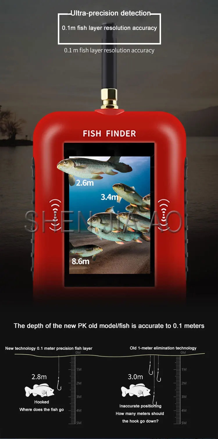 F3-C беспроводной портативный интеллектуальный рыболокатор высокой четкости, гидролокатор, эхолот, рыболокатор, рыболокатор