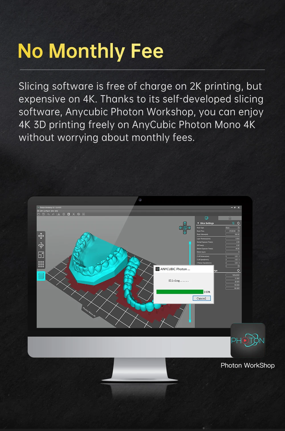 Моно 4K поддерживает 30%-100% УФ-настройки питания и может быть адаптирован к печати смолы с различными УФ-энергетическими требованиями для удовлетворения Ваших индивидуальных потребностей печати.