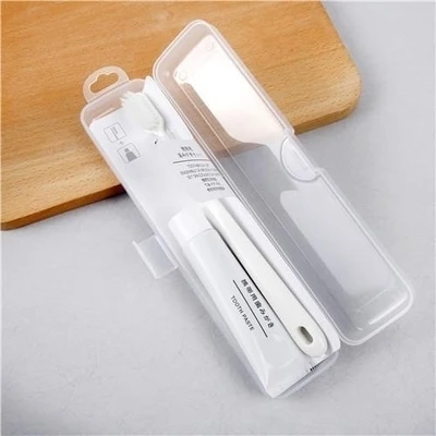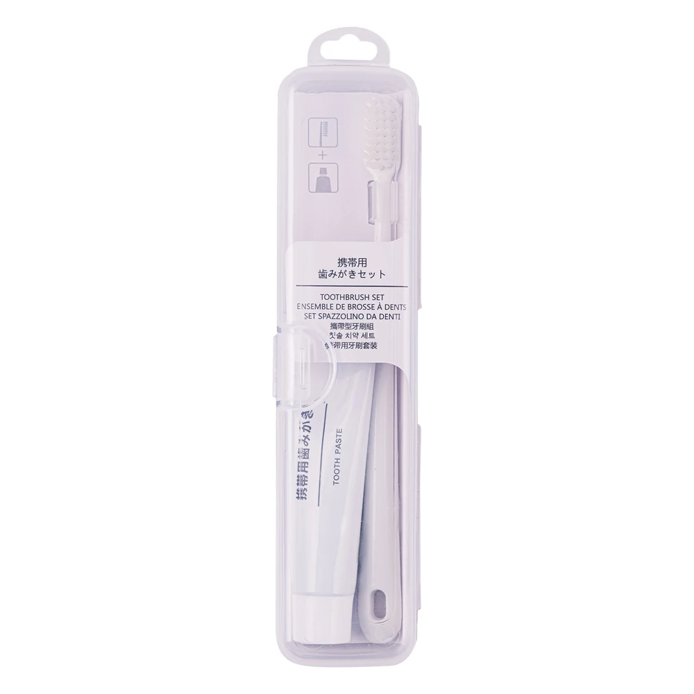 Дорожный набор. В практическом прозрачном корпусе, содержит зубную пасту 30 мл и складную зубную щетку со средней жесткостью, округлой щетиной .