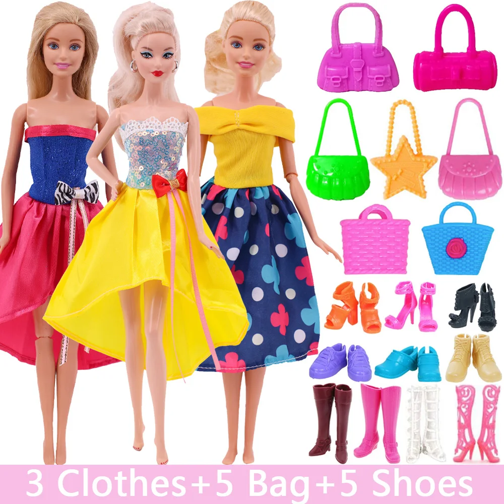 13 шт. аксессуары для Барби = 3 шт. одежда + 5 сумок + 5 туфель
