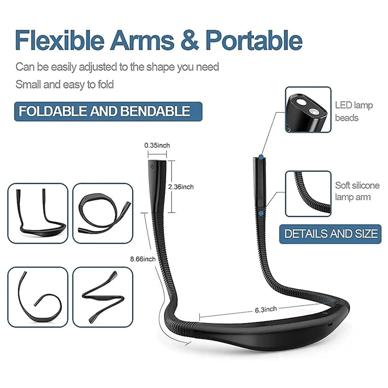 [Светильник для чтения без рук и эргономичный дизайн] светильник для чтения шеи изготовлен из высококачественного материала, прочный и гибкий, когда вы читаете или заняты работой, больше не нужно использовать ручной светильник для вспышки, вы можете легко выбрать лучший угол для удовлетворения ваших различных потребностей.