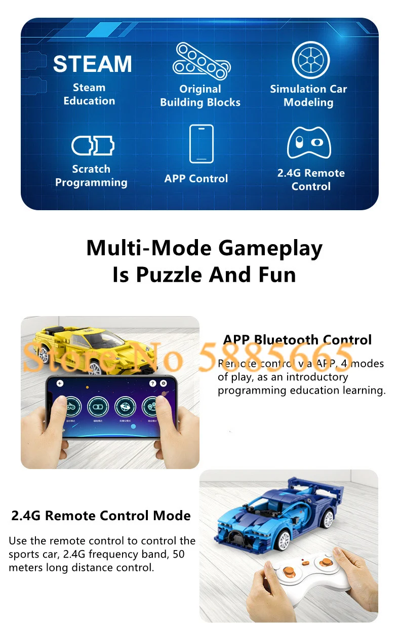 Режим дистанционного управления 2,4G: Используйте пульт дистанционного управления для управления спортивным автомобилем, частотный диапазон 2,4G, управление на расстоянии 50 метров.