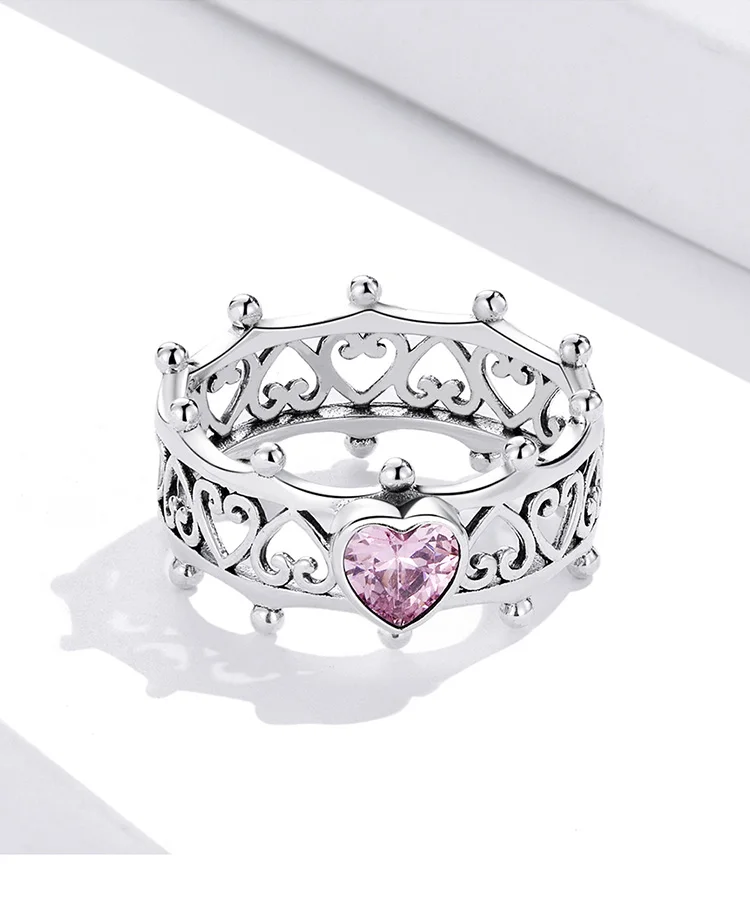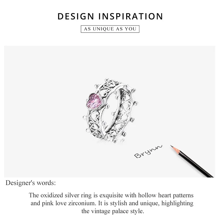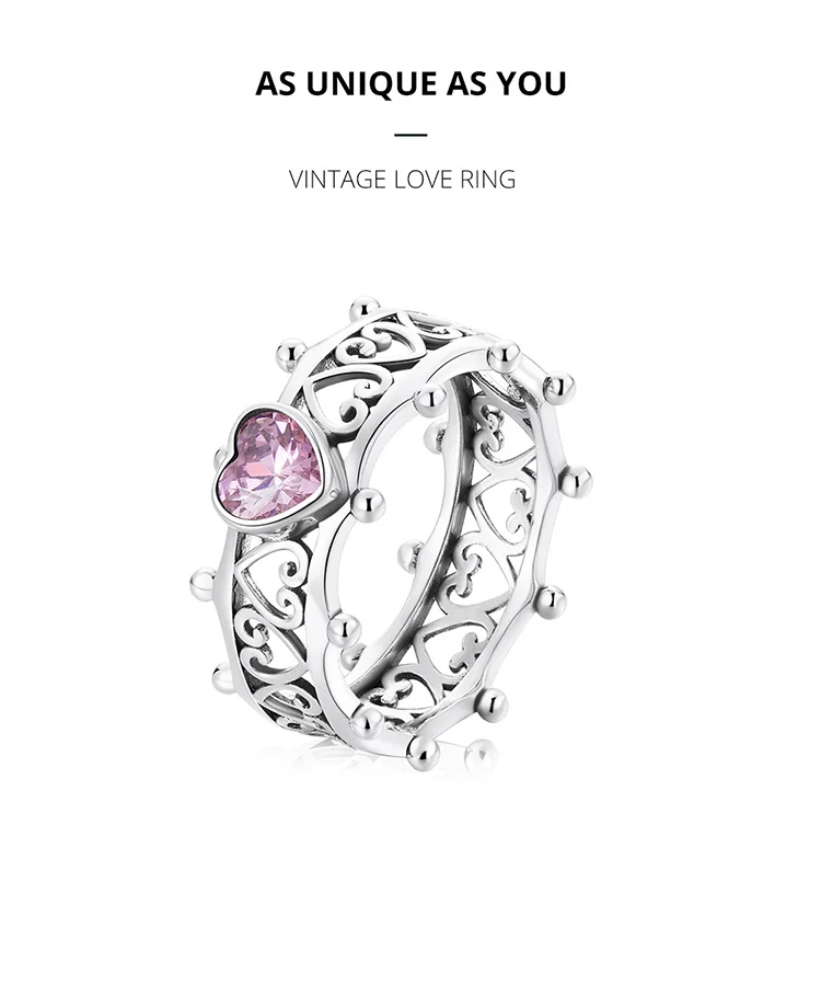 ❤[Описание] окисленное серебряное кольцо изысканно с полыми сердечками и розовым цирконием любви. Он стильный и уникальный, подчеркивающий винтажный Дворцовый стиль.