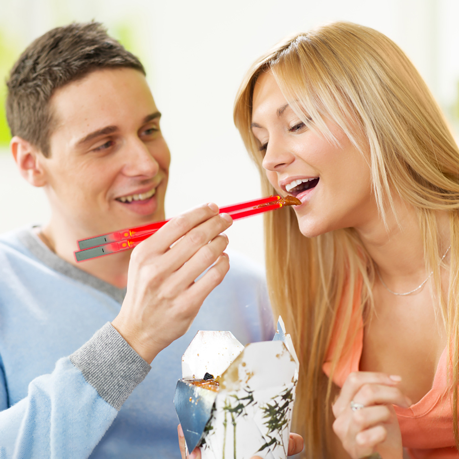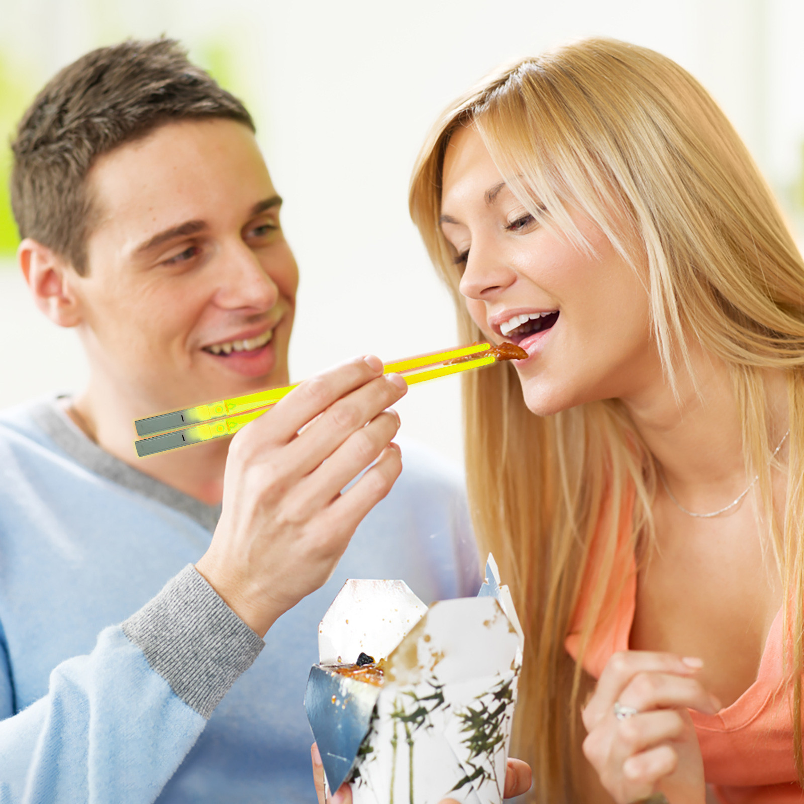 Color war on your sushi, noodles, Japanese, Chinese, Thai or Vietnamese food with your glowing chopsticks!