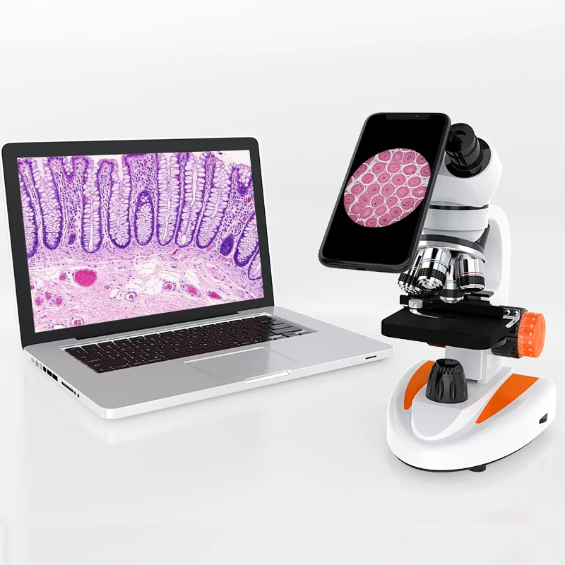 3. Compound Light Microscope : Incident and transmitted LED light sources with adjustable brightness,which provides bright, cool light for working with temperature-sensitive or live specimens.With a phone adapter, it can record beauty,acquire knowledge in the micro world and cultivate love of science.