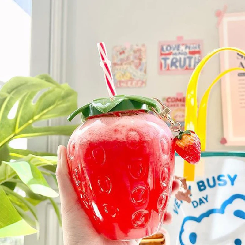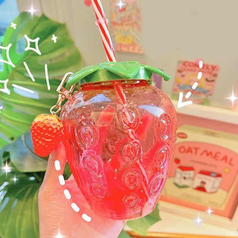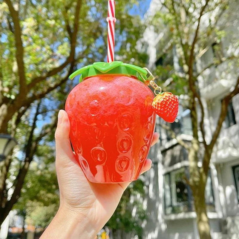 Эта бутылка для воды, созданная в форме клубники, является милой, уникальной и подходит для использования на открытом воздухе или в помещении.