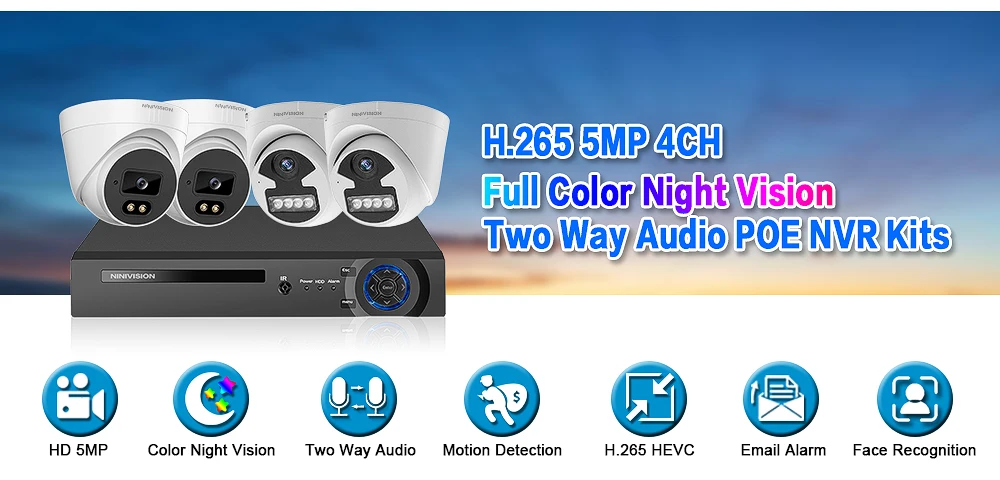 4. Наш NVR и камеры поддерживают расширенное H.265 Сжатие видео, питание через Ethernet, подключи и работай, прост в использовании;