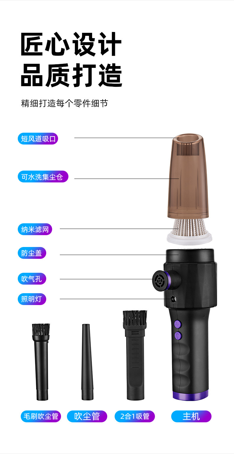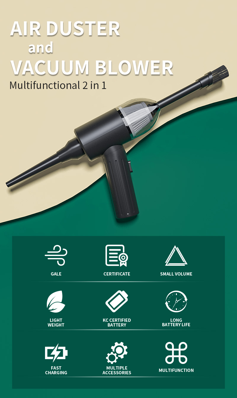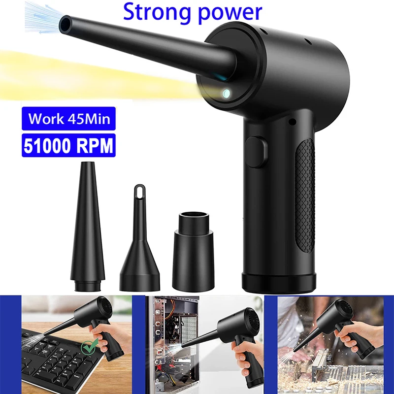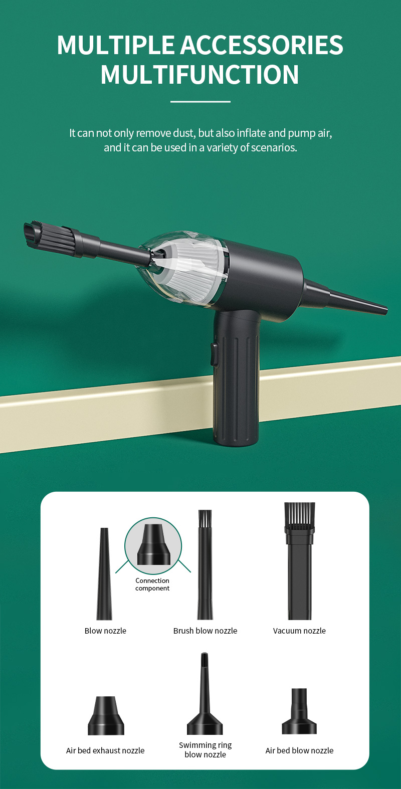 Время работы: 30-45 минутМетод зарядки: зарядка через USBАксессуары: 4 насадки (Насадка для выдувания, насадка для выдувания кистей и т. д.), mannual, usb-кабель Type-C【Мощный и эффективный