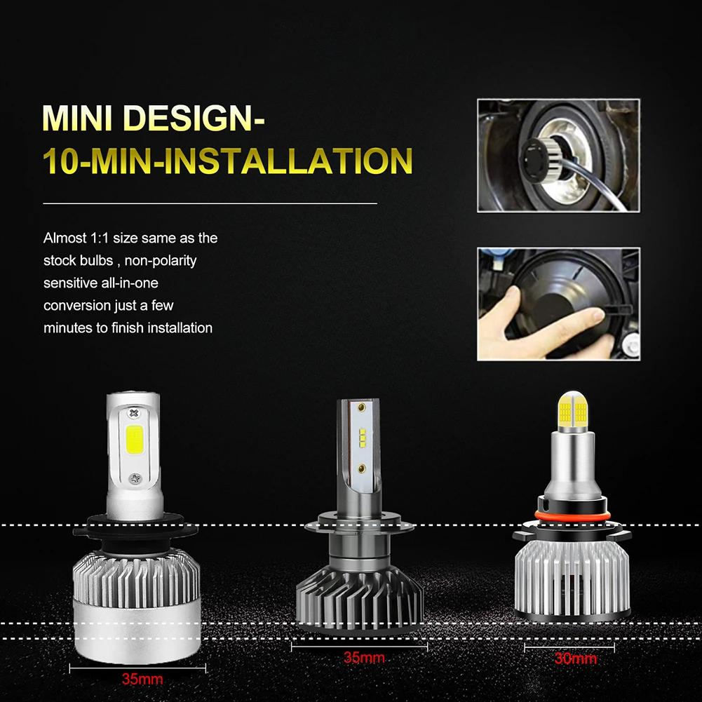 * 1. [Отличное обновление, прочное проникание]: светодиодные фары имеют чистый белый свет 6000K с сильной проникающей силой в дождливые и туманные дни, безопасные и удобные, чтобы удовлетворить ваше двойное стремление к моде и безопасности. Увеличьте яркость FOM на 300%