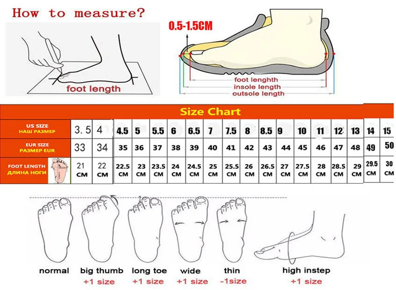 4. В каждой стране используются различные стандартные размеры, пожалуйста, ознакомьтесь с нашей таблицей размеров перед покупкой и выберите размер только в соответствии с длиной стопы, если есть какие-либо сомнения относительно размера, пожалуйста, свяжитесь с клиентами.