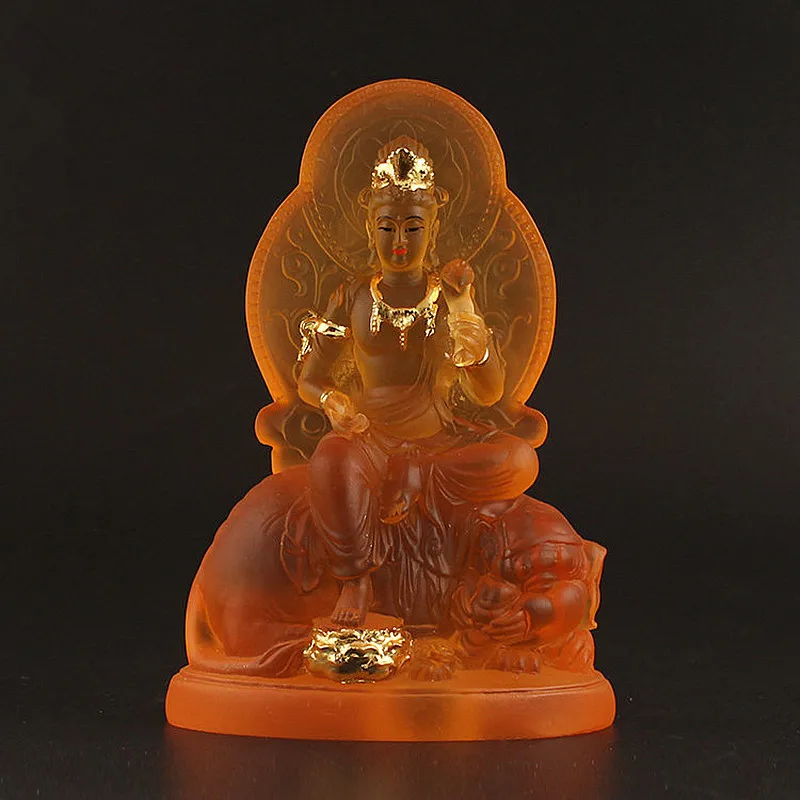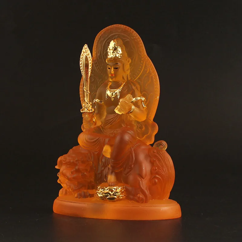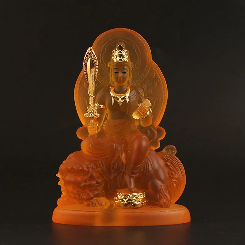 12 см Manjusri Samanta статуя Будды Бодхисаттва, желтая смола изысканные сохраняя безопасные фигурки украшение для дома