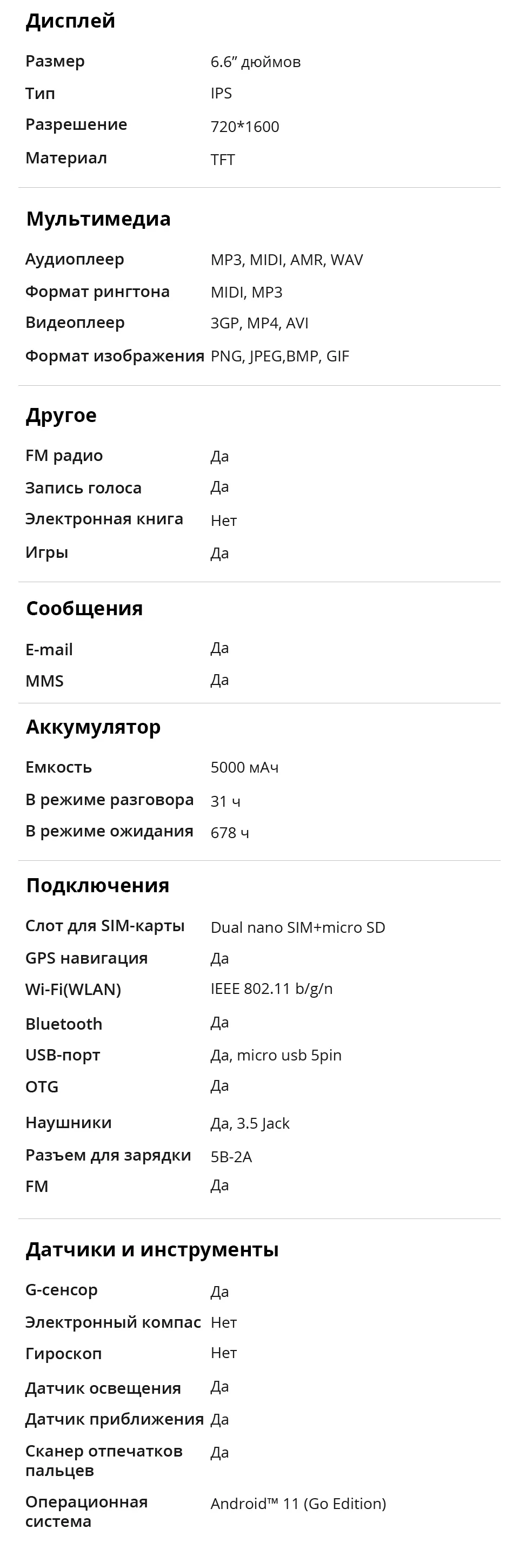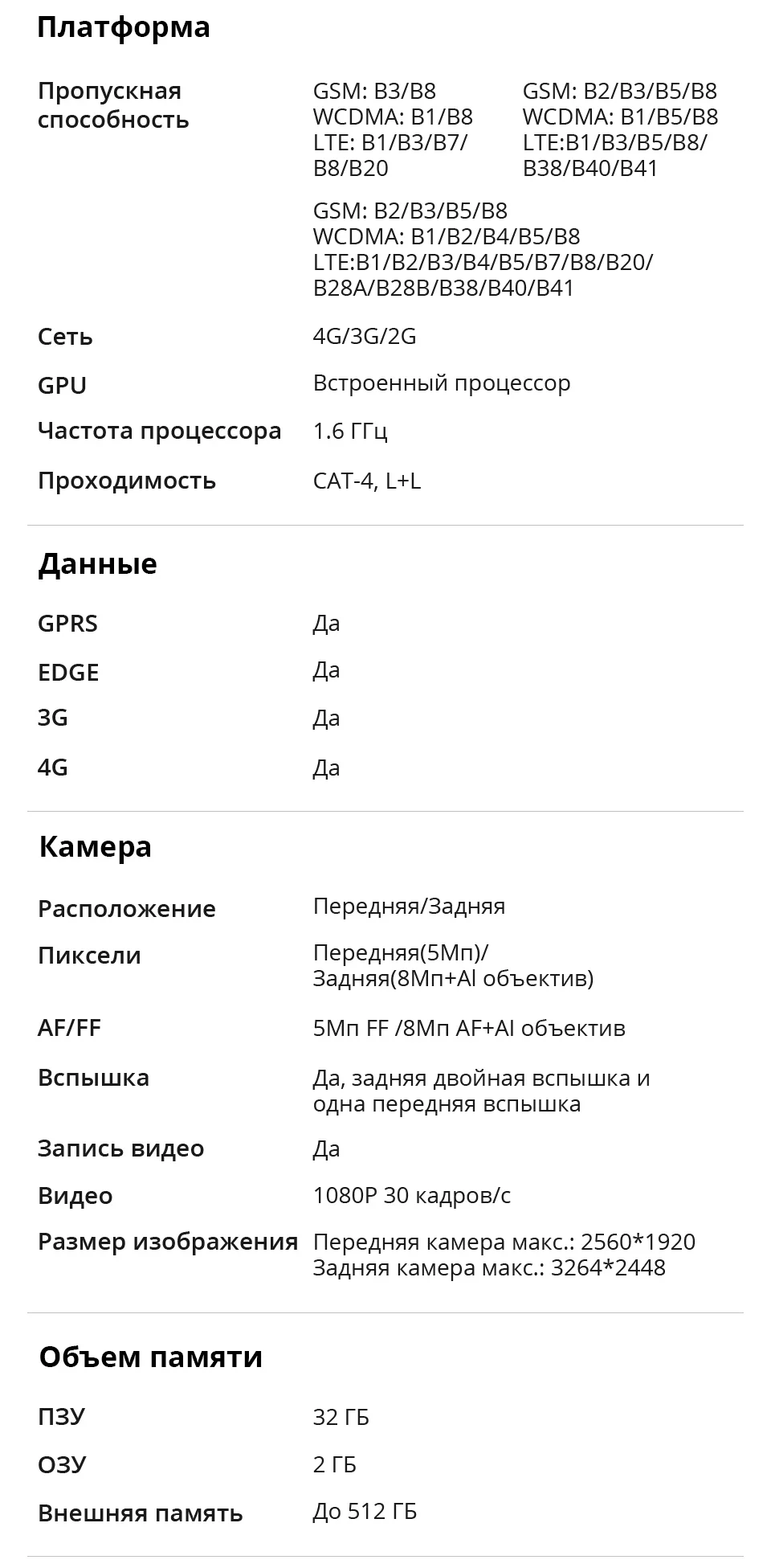 Характеристики