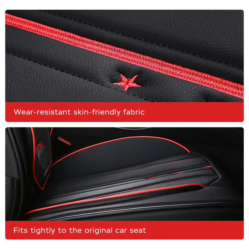 【Высокое Качество 】: наши чехлы для сидений изготовлены из искусственной кожи, что гарантирует хорошую износостойкость и водонепроницаемость. Чехлы для сидений имеют нескользящую базовую ткань, чтобы предотвратить перемещение чехлов сидений везде; Дизайн мезонина имеет мягкую губку для увеличения комфорта езды и снятия усталости.