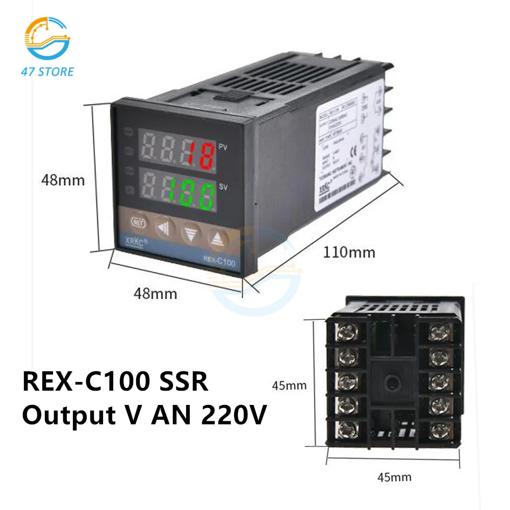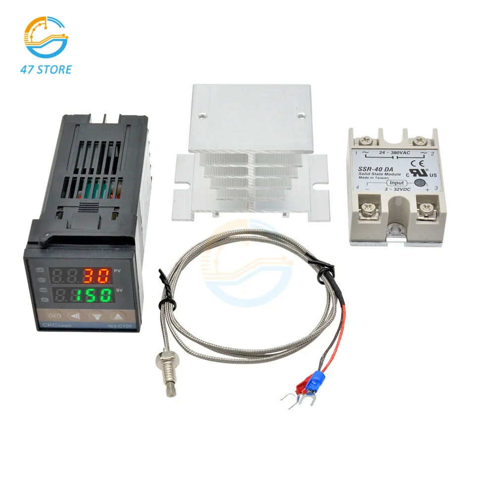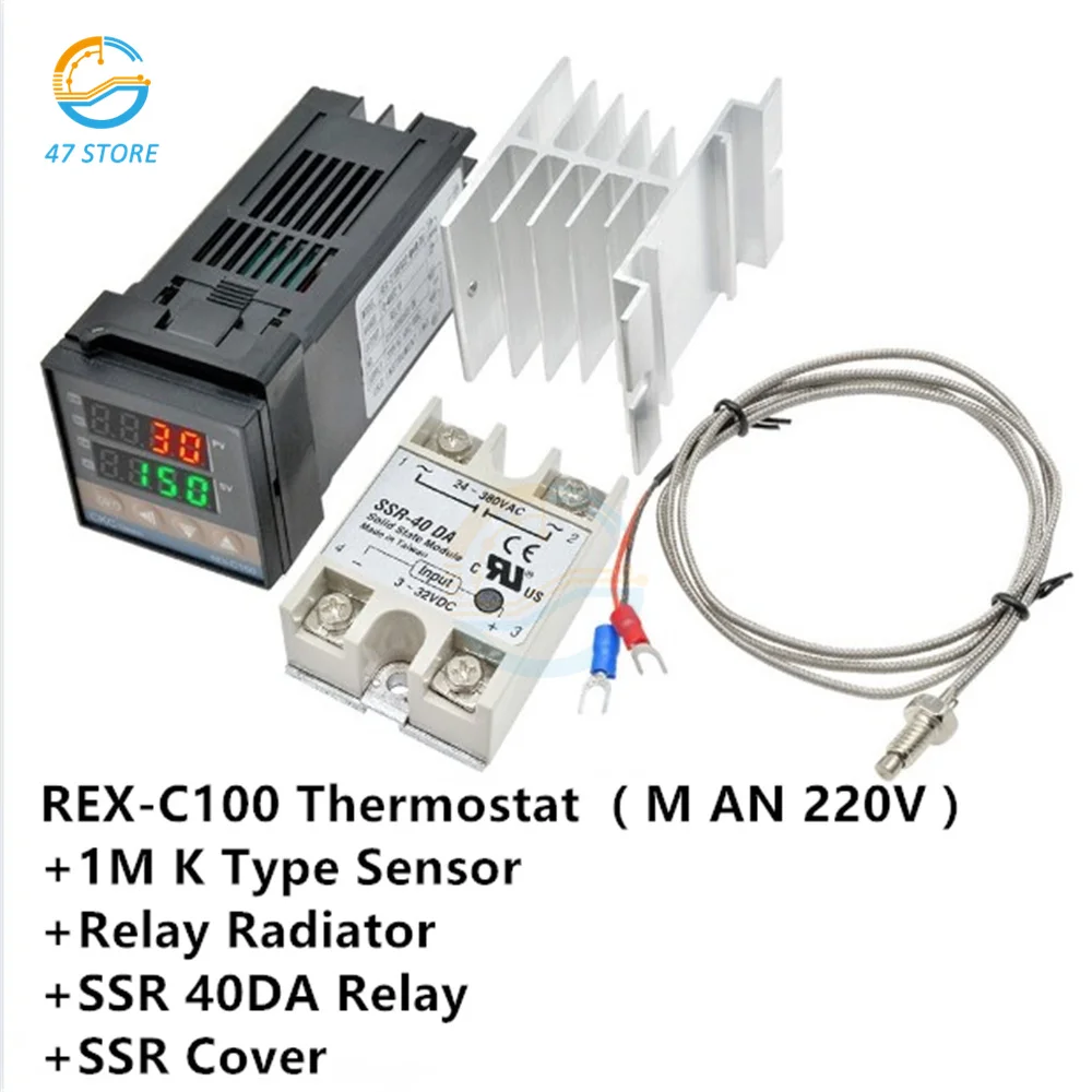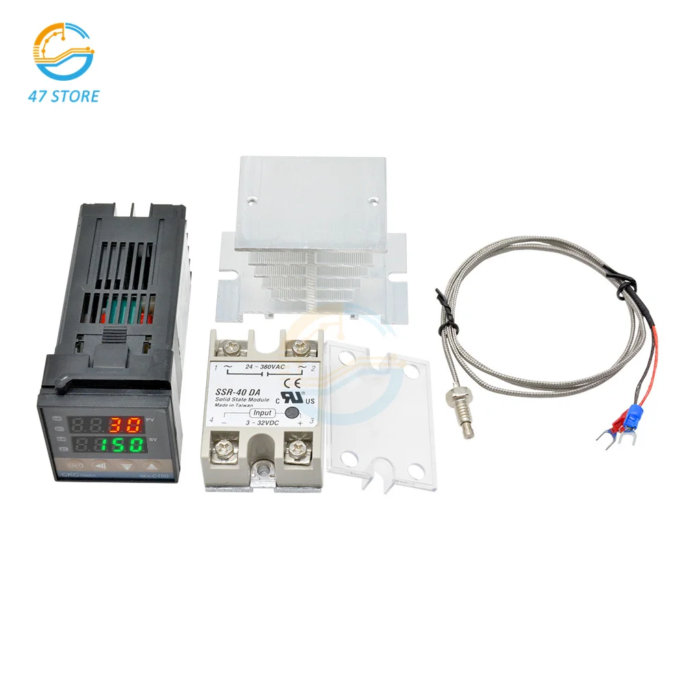 REX-C100 цифровой PID Температура контроллер Термостат 220V полупроводниковое реле Выход + Max.40A SSR реле + зонд термопары K + теплоотвод + крышка