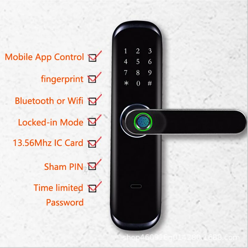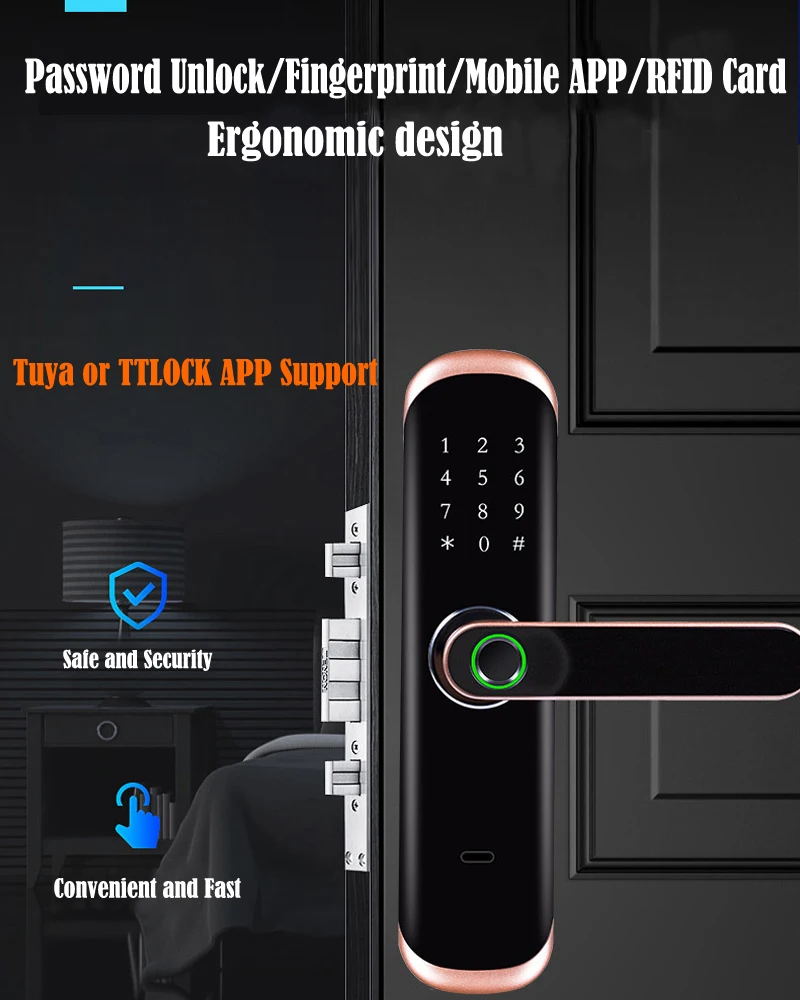 Метод разблокировки: приложение tuya bluetooth, код доступа, отпечаток пальца, медицинский ключ
