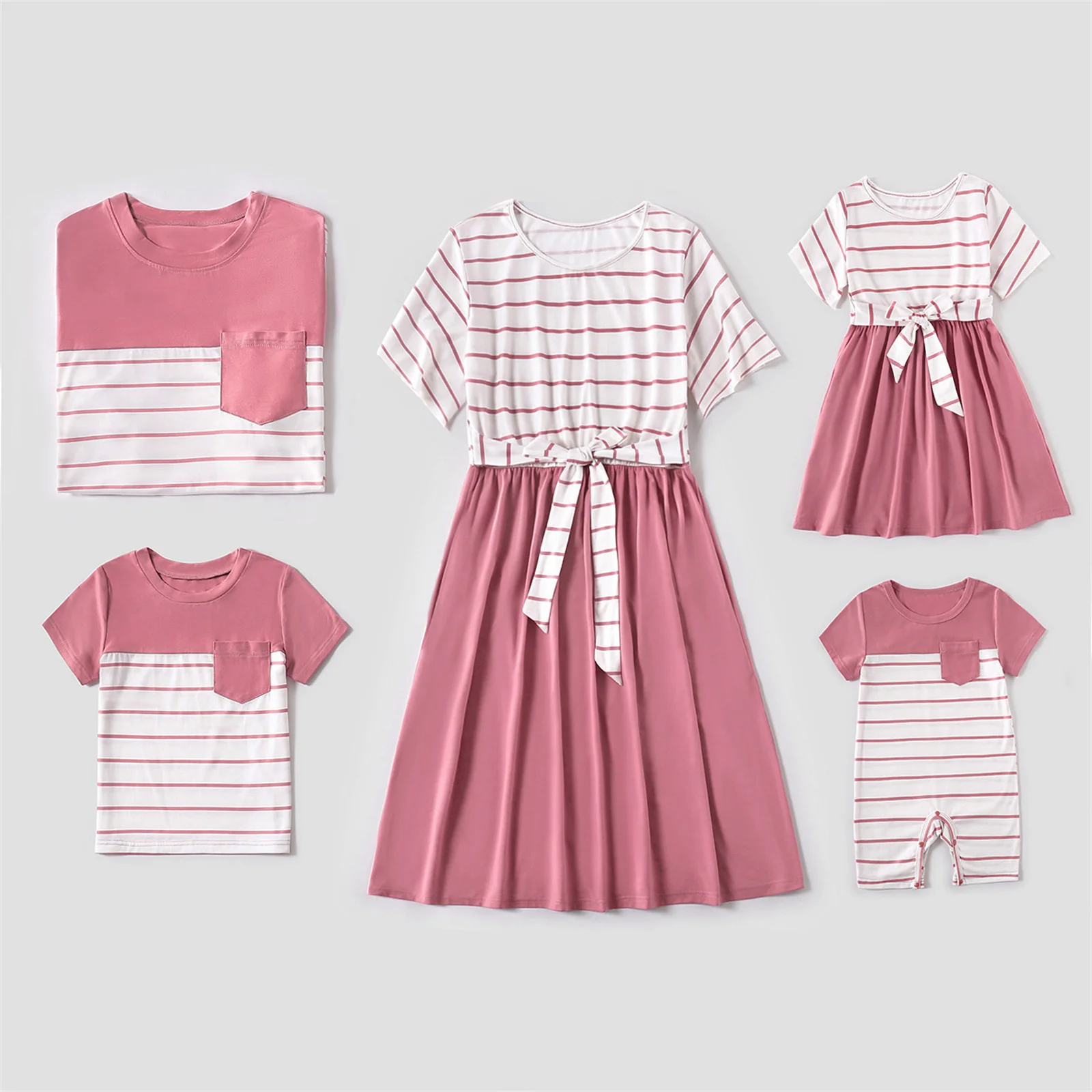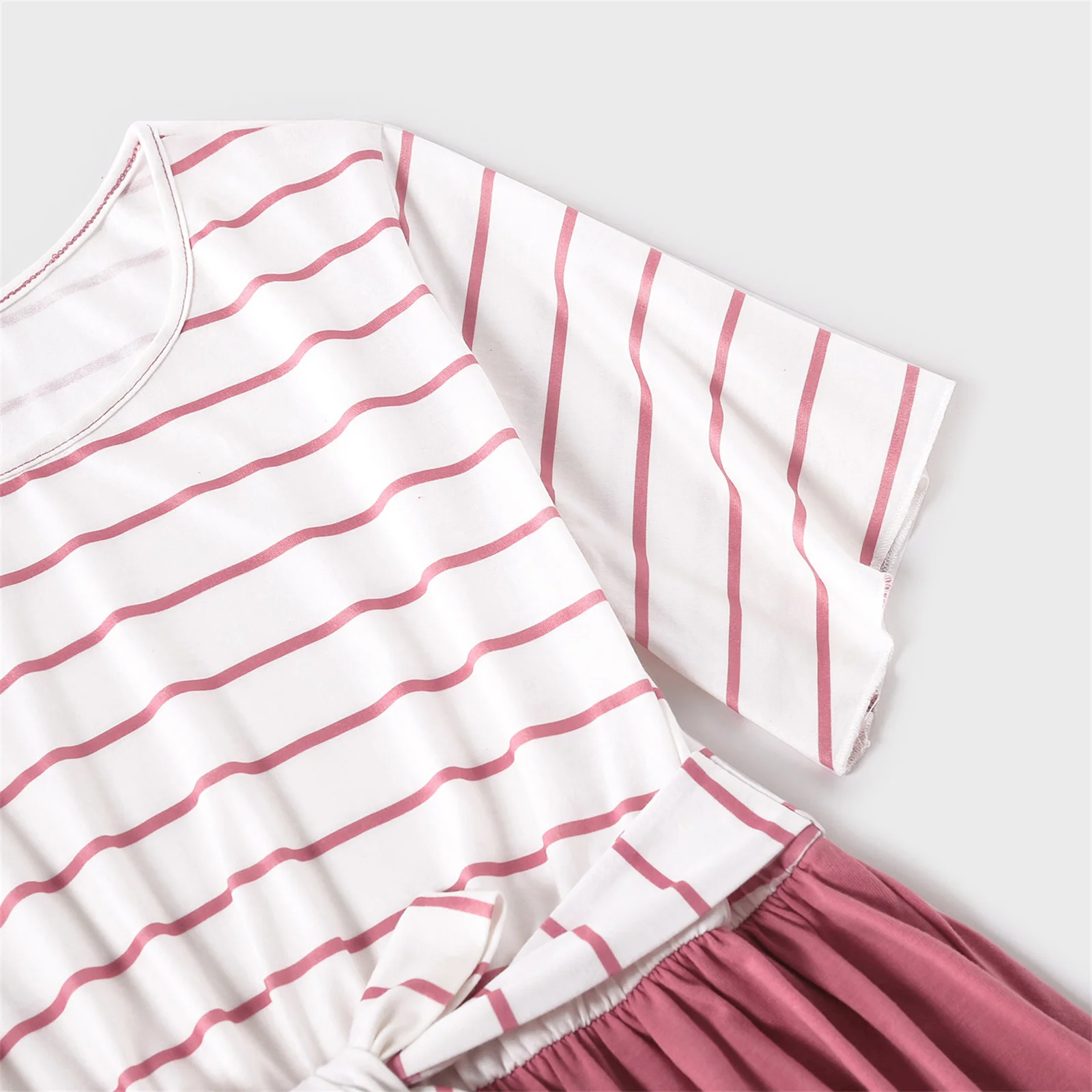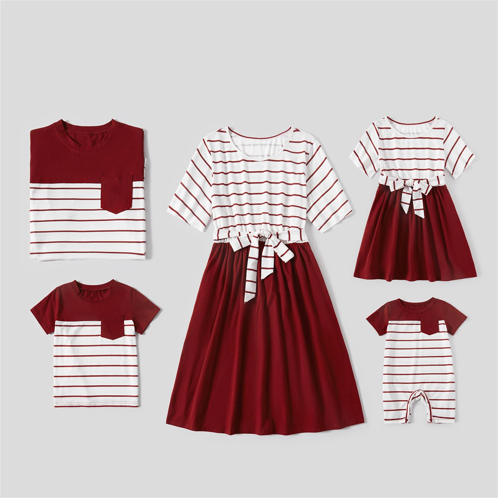 PatPat/Семейные комплекты в красную и белую полоску с короткими рукавами (комбинированные платья и футболки с поясом)