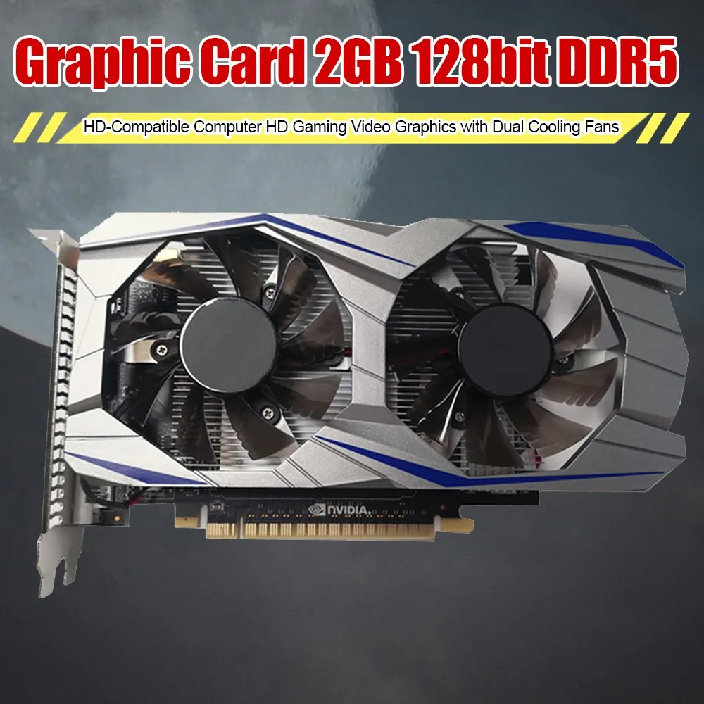 Графическая карта 2 Гб 128 бит DDR5 HDMI-совместимый компьютер HD игровая Видео Графика с двумя охлаждающими вентиляторами