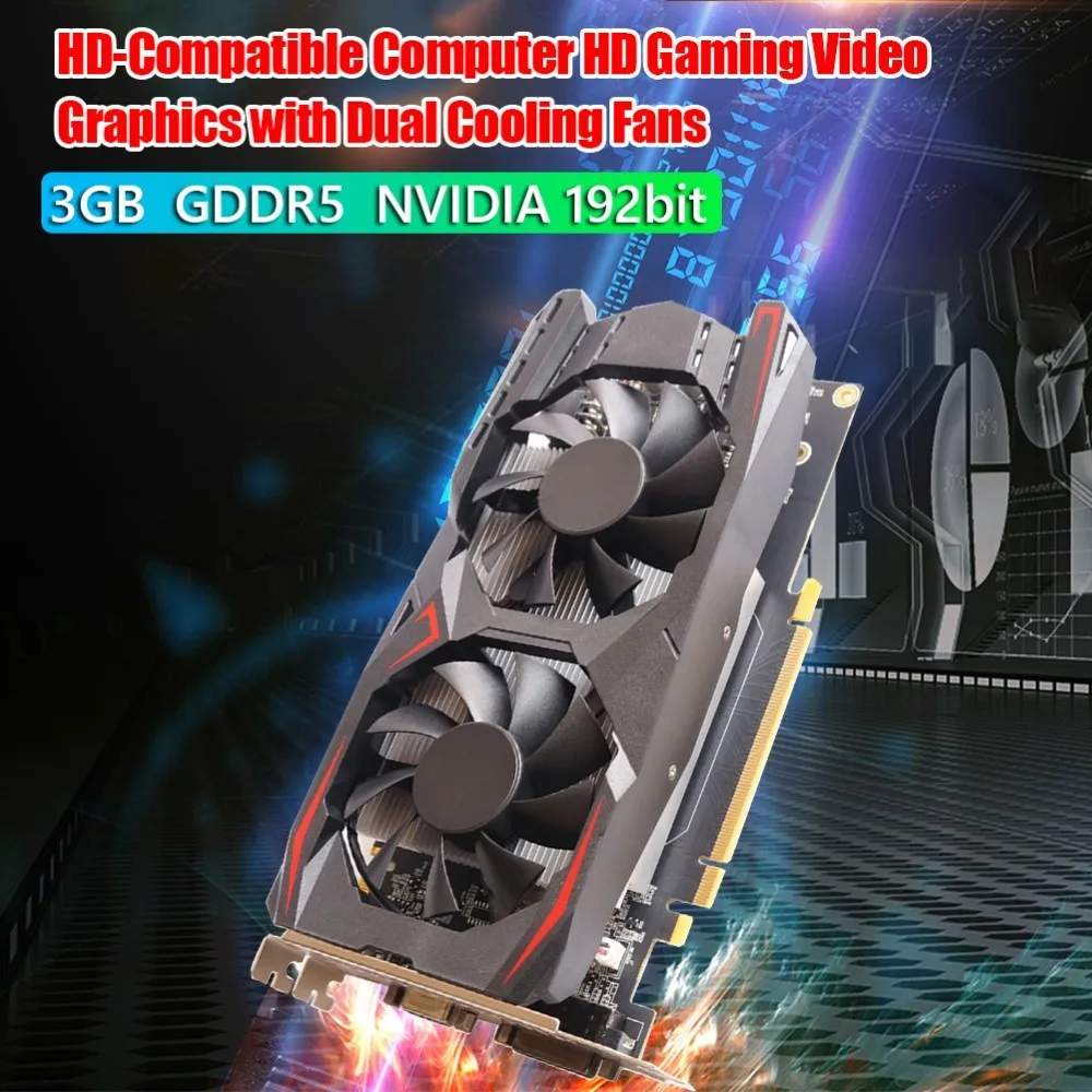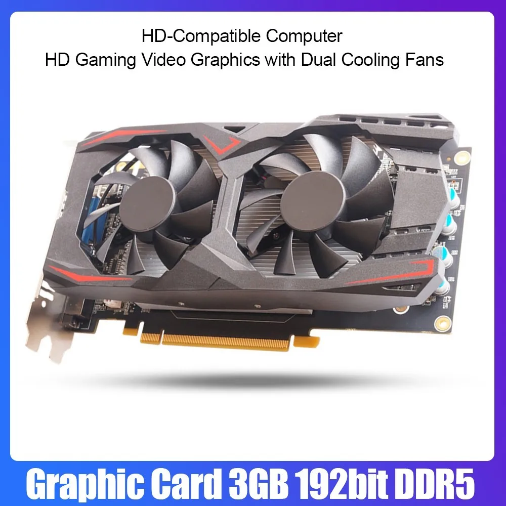 Графическая карта 3 ГБ 192bit DDR5 HDMI-совместимый компьютер HD игровая Видео Графика с двумя охлаждающими вентиляторами