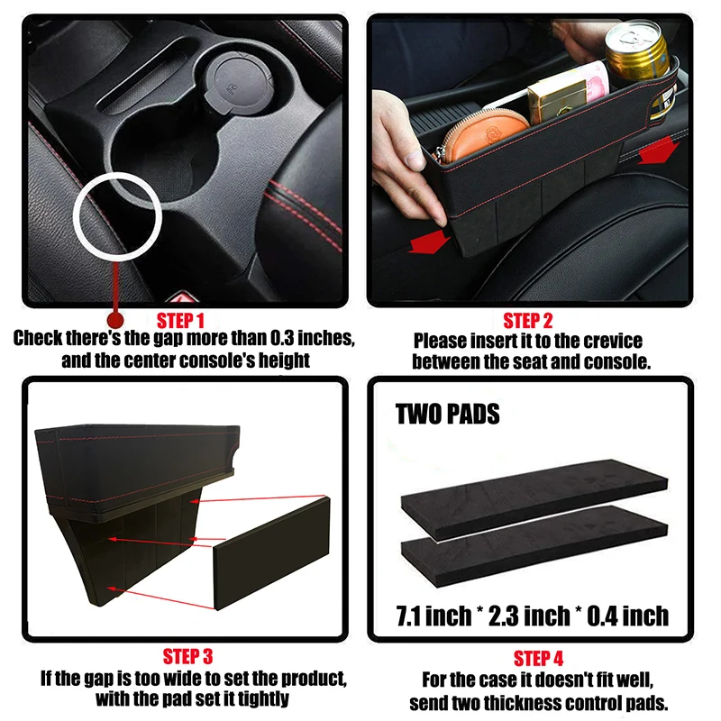 【Strong Compatibility】The автомобильное кресло gap Органайзер размера 11,3x2,5x6,7 дюйм (ов), который подходит для большинства транспортных средств. Обеспечить сиденье разрывы с ширина составляет менее 0,9 дюйм (ов). Пожалуйста, подтвердите зазор вашего автомобильного сиденья перед заказом.