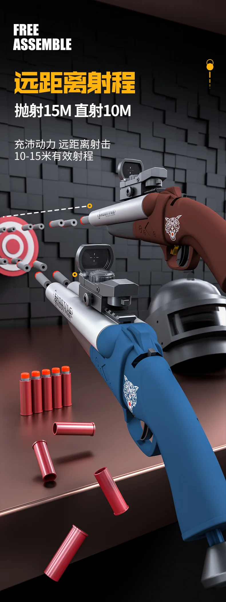 4. Посылка включает в себя: игрушечный пистолет * 1 прицел * 1 мягкая пуля * 20 пластиковый корпус * 4