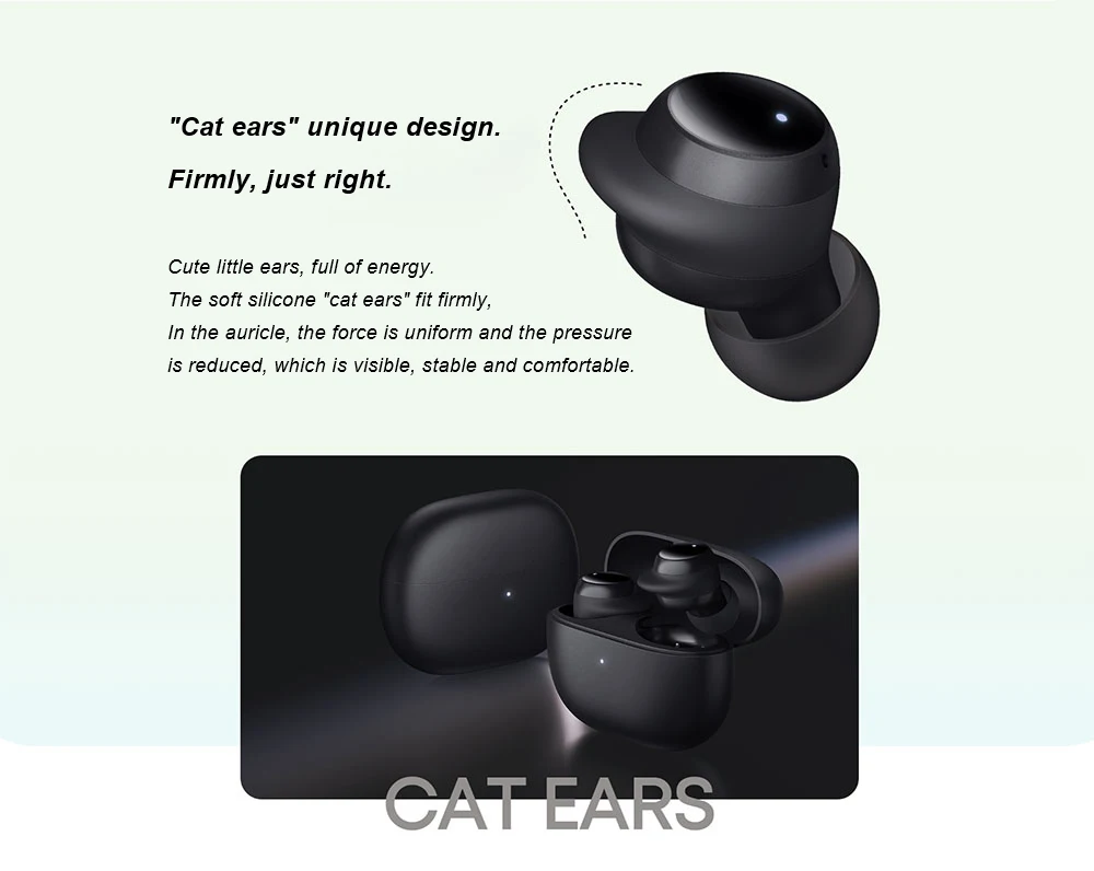 Легкий и истинный беспроводной | Кошачий ушной стабильный дизайн | Bluetooth 5,2 | 18 часов долгий срок службы батареи