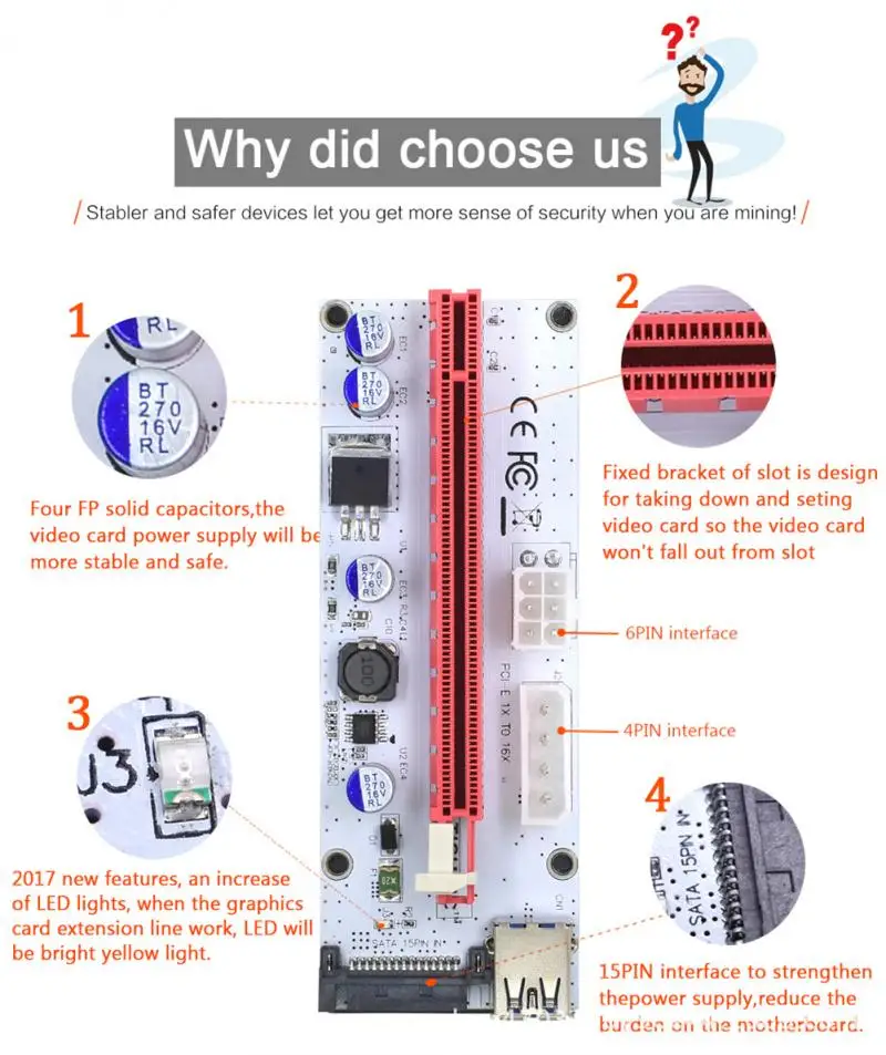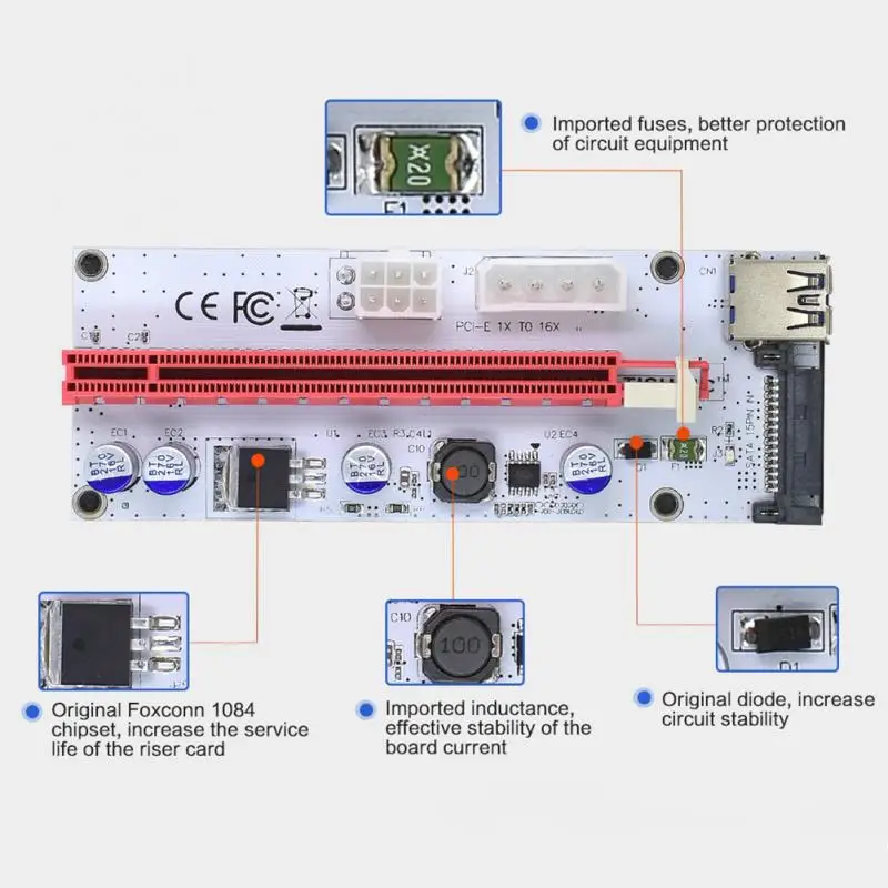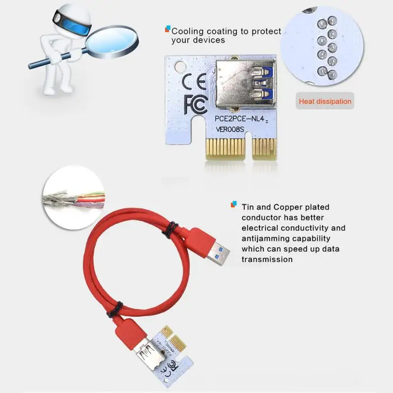 Новинка VER008S Molex 4Pin 6Pin 15Pin PCI Express PCIE PCI-E Riser Card 008s 008 адаптер 1X к 16X USB3.0 удлинитель Miner