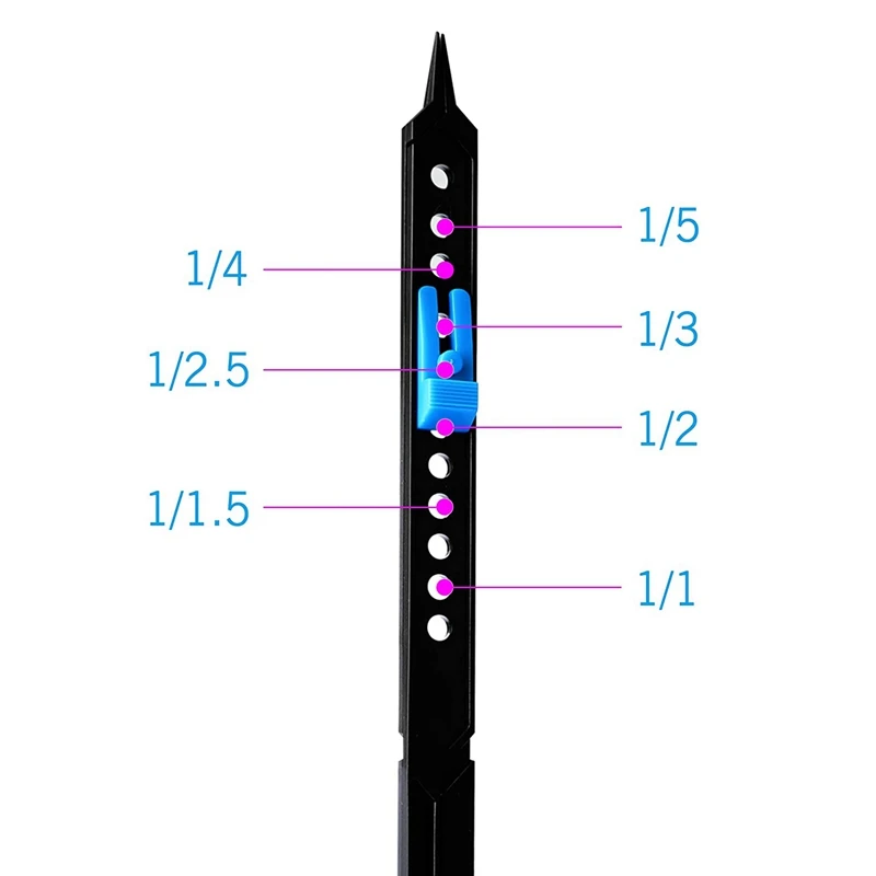 Пропорциональная шкала делителя: трасферические измерения от реальных предметов, фотографий или эскизов, чтобы повысить точные пропорции и перспективу в готовом произведении искусства. Весы в соотношении от 5:1 до 1:5.