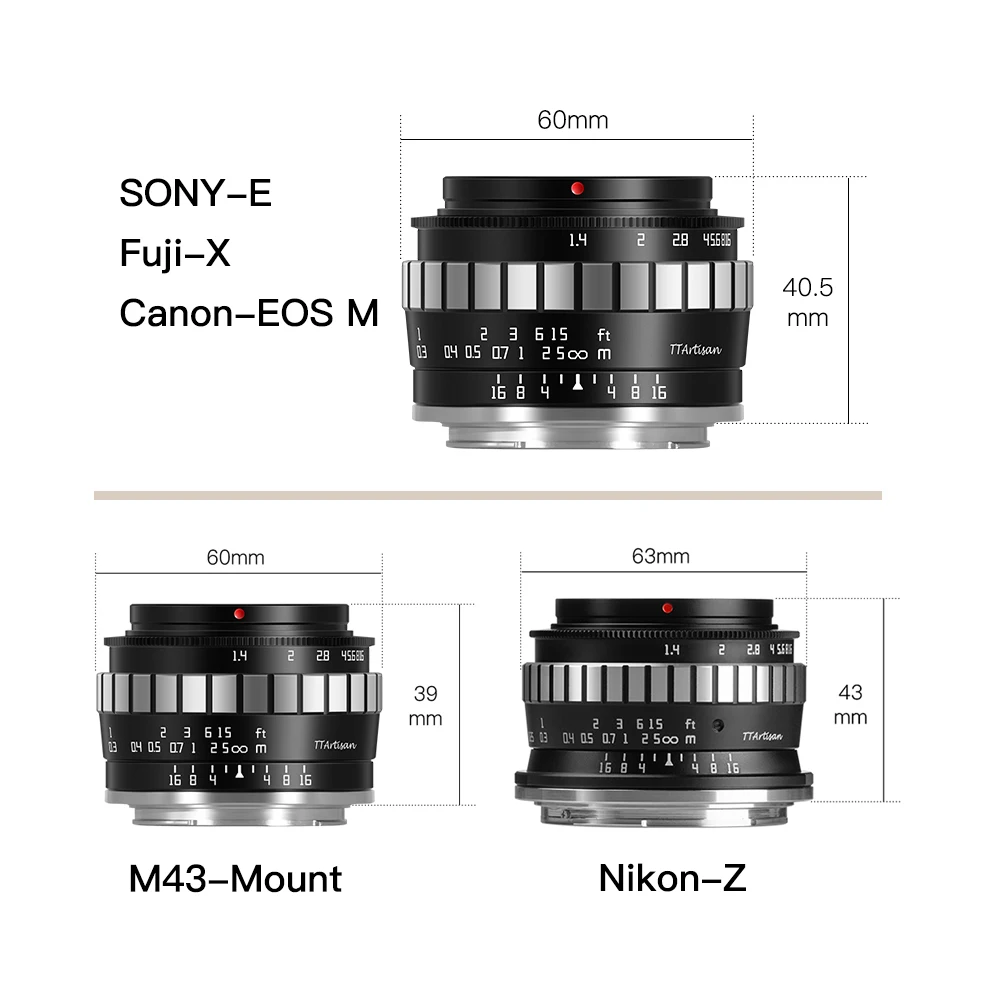 -APS-C объектив Forma: TTartisan 23 мм F1.4 представляет собой широкоугольный объектив, предназначенный для беззеркальных фотоаппаратов aps-c-формата Sony E/Fuji X/M4/3/Nikon Z и обеспечивает эквивалентное фокусное расстояние 35 мм.