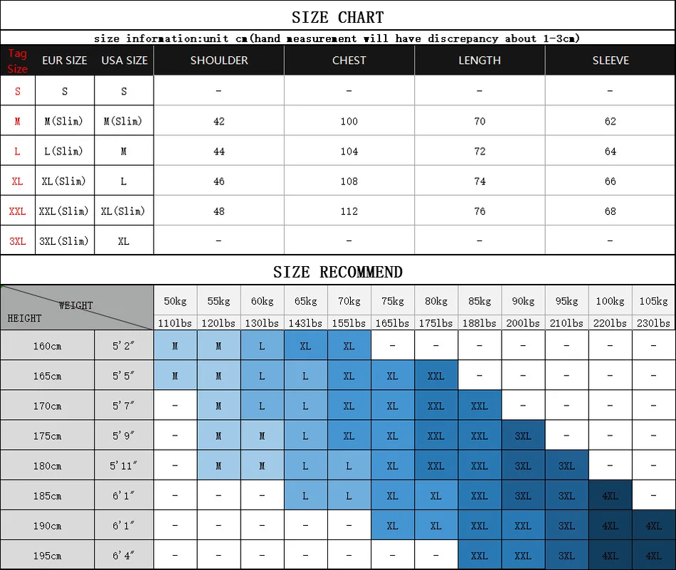2) Как правило, размер рубашки должен быть больше вашего размера тела. Вы можете проверить свою обычную рубашку. Если обхват груди 100 см, мы предлагаем вам выбрать рубашку с 104 или 108 см.