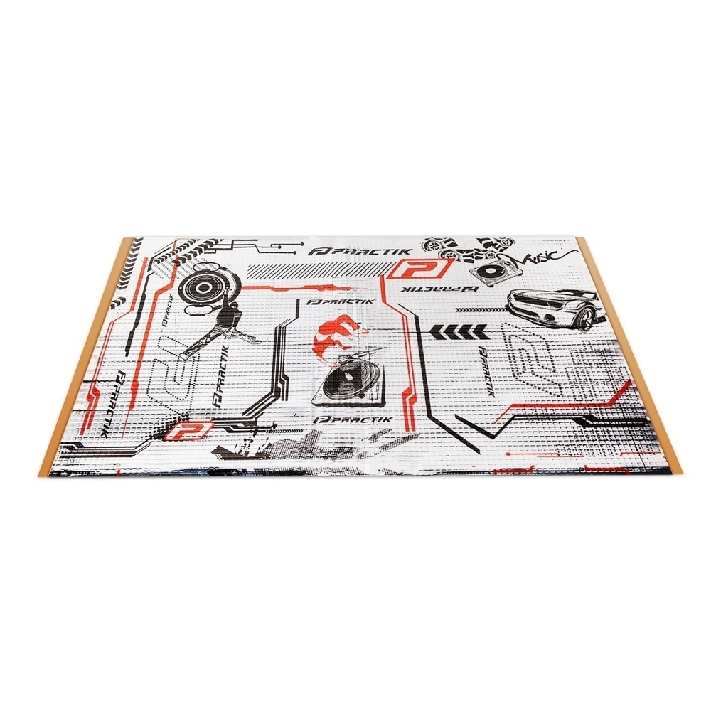 Practik 2.1 — вибродемпфирующий самоклеящийся материал, толщина: 2,1 мм; лист: 0,46м х 0,75м.Practik — вибропоглотитель на основе полимер–каучуков, разработан специально для самостоятельного использования. Оптимальное сочетание эффективности, простоты монтажа и доступной цены позволяет добиться высоких результатов автолюбителю без специальных инструментов и навыков. Оптимален на металлическом листе толщиной 0,8 мм (при толщине металла больше 0,8 мм рекомендуется применять в два и более слоёв). Легко монтируется на поверхности со сложным рельефом, устанавливается без применения теплового пистолета, имеет длительный срок эксплуатации не теряя рабочих свойств. Вибропоглощающий материал с сильным клеевым слоем. Лист большой площади позволяет быстро закрывать плоские поверхности. Работает в диапазоне 20-500Гц. Снижает вибрации металлических и пластиковых конструкций и шум от них. Может быть использован для обработки: дверей, крыши, крышка багажника ,металлических раковин и ванн, систем вентиляции.