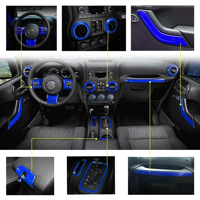 Interior Trim Kit for Jeep Wrangler JK 2011-2017 Door Handle & Cup Cover, Steering Wheel & Center Console Trim