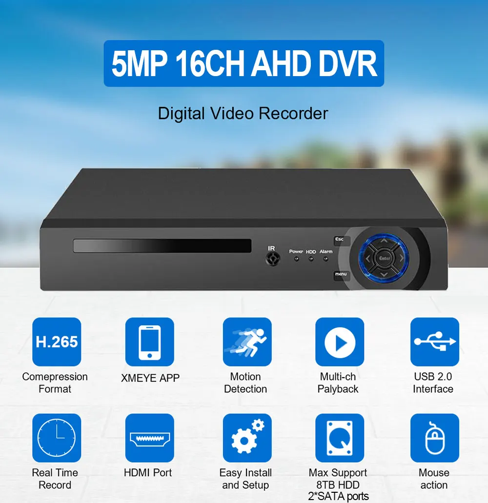 1 X H.265 16CH 5.0MP 6 IN 1 AHD DVR Hybrid Digital Video Recorder