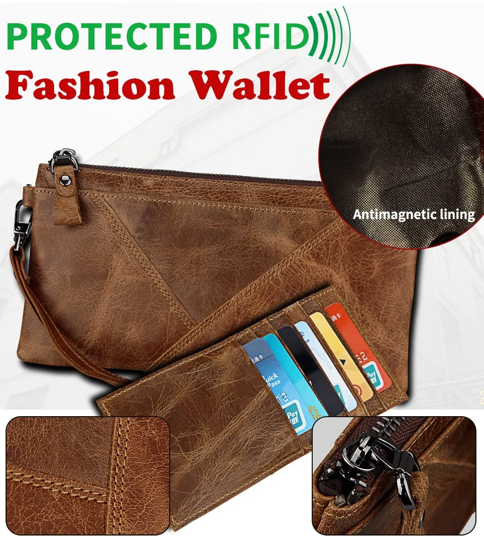Crazy Horse кожаный мужской кошелек Противоугонная Rfid мужские длинные кошельки Держатель для карт Многофункциональный клатч Мобильный телефон Сумки