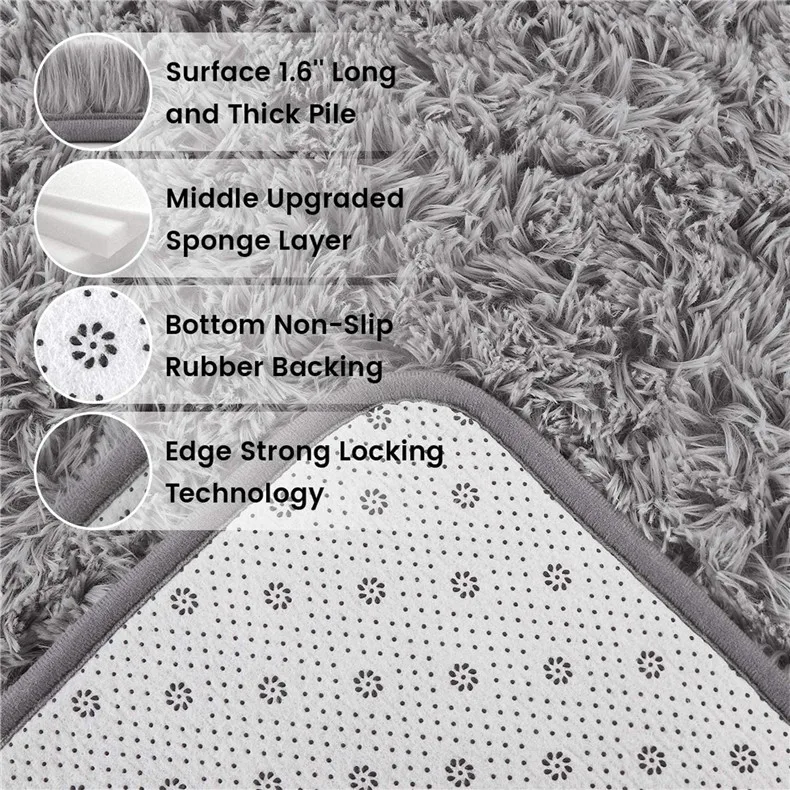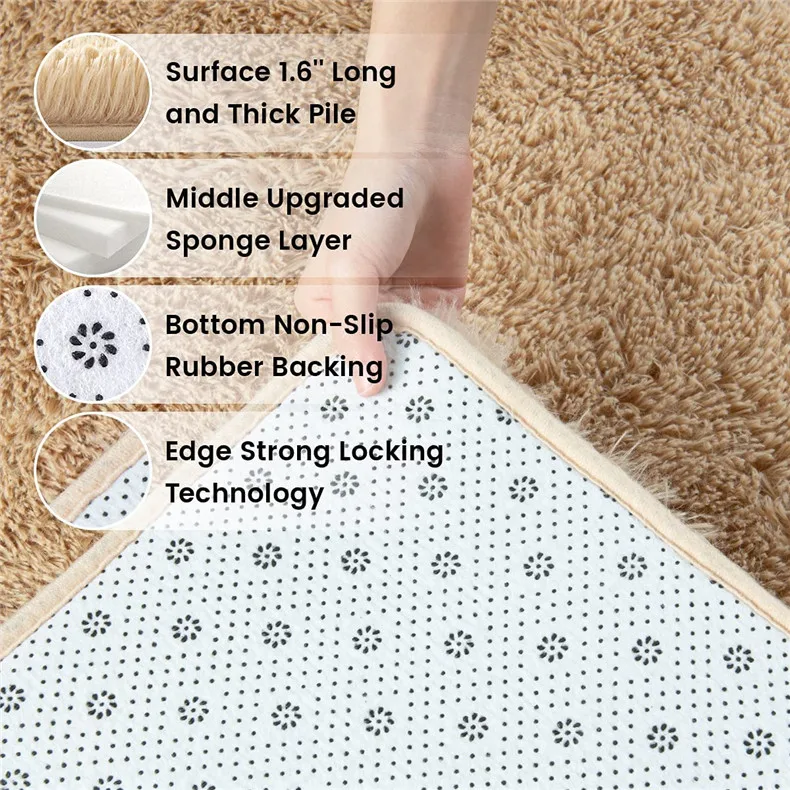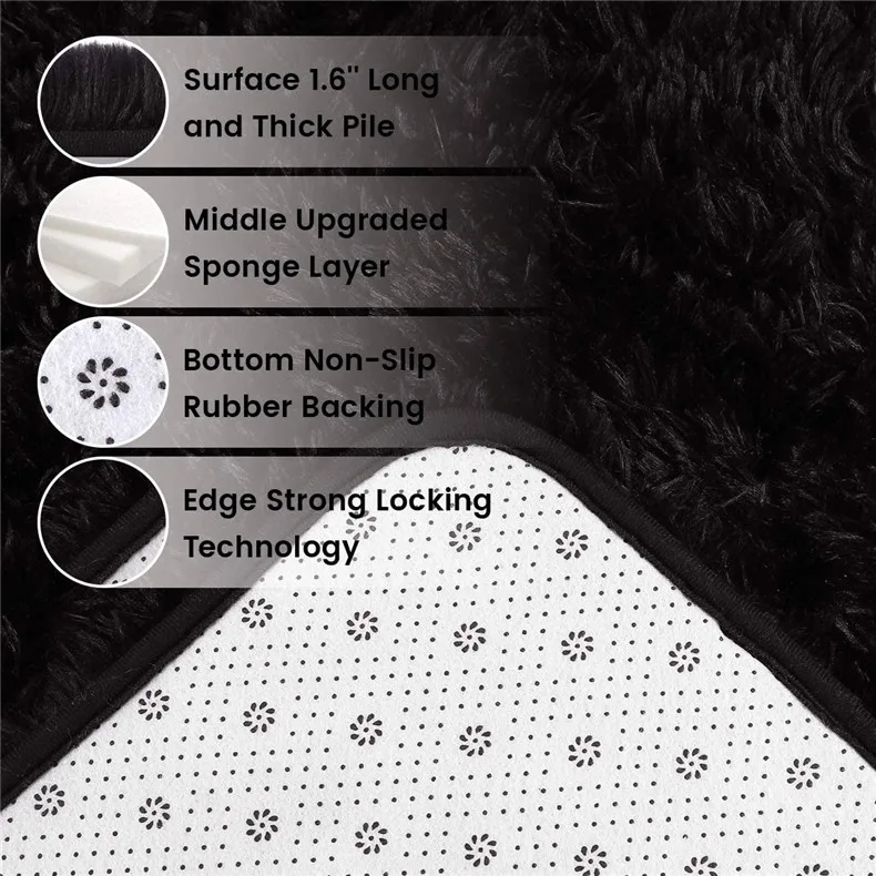 【Превосходное качество, искусственный мех, 】этот пушистый ковер имеет верхний слой из мягкого бархата, С улучшенным межслойным слоем губки, который приносит вам мягкость, как выходить на облако и защищает пальцы от холодного пола, и противоскользящие пластиковые пятна снизу.