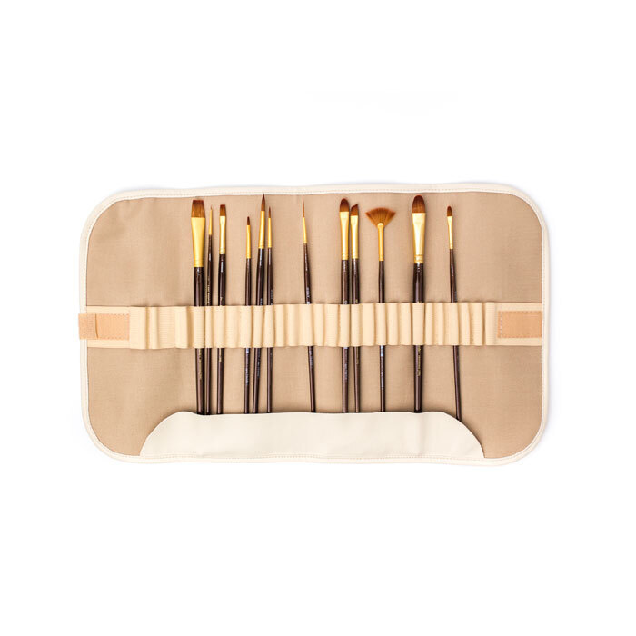 Набор кистей Синтетика 12 штук Malevich Claude разные формы, в пенале-скрутке бежевые 754800