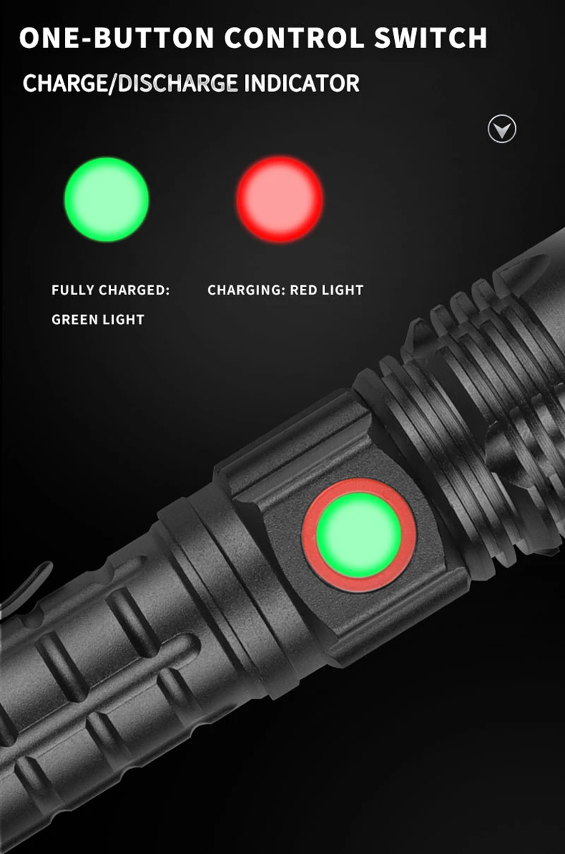 Светильник индикатора: напоминание о низком заряде батареи, светодиодный индикатор положения переключателя мигает красным и полным зеленым светильник во время зарядки