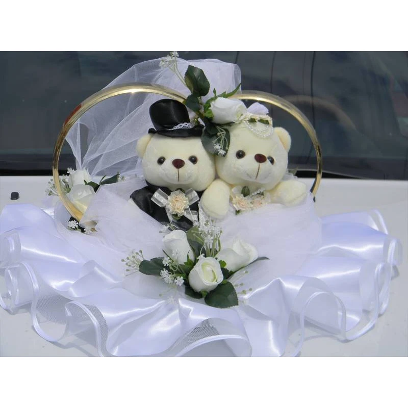 Лучшим решением является украшение на крышу – оно позволит громко и красиво заявить всем окружающим о Вашем счастье! Милые мишки в образе жениха и невесты на фоне обручальных колец будут отлично смотреться на автомобиле любой марки и цвета, а их стильный дизайн не оставит никого равнодушным!