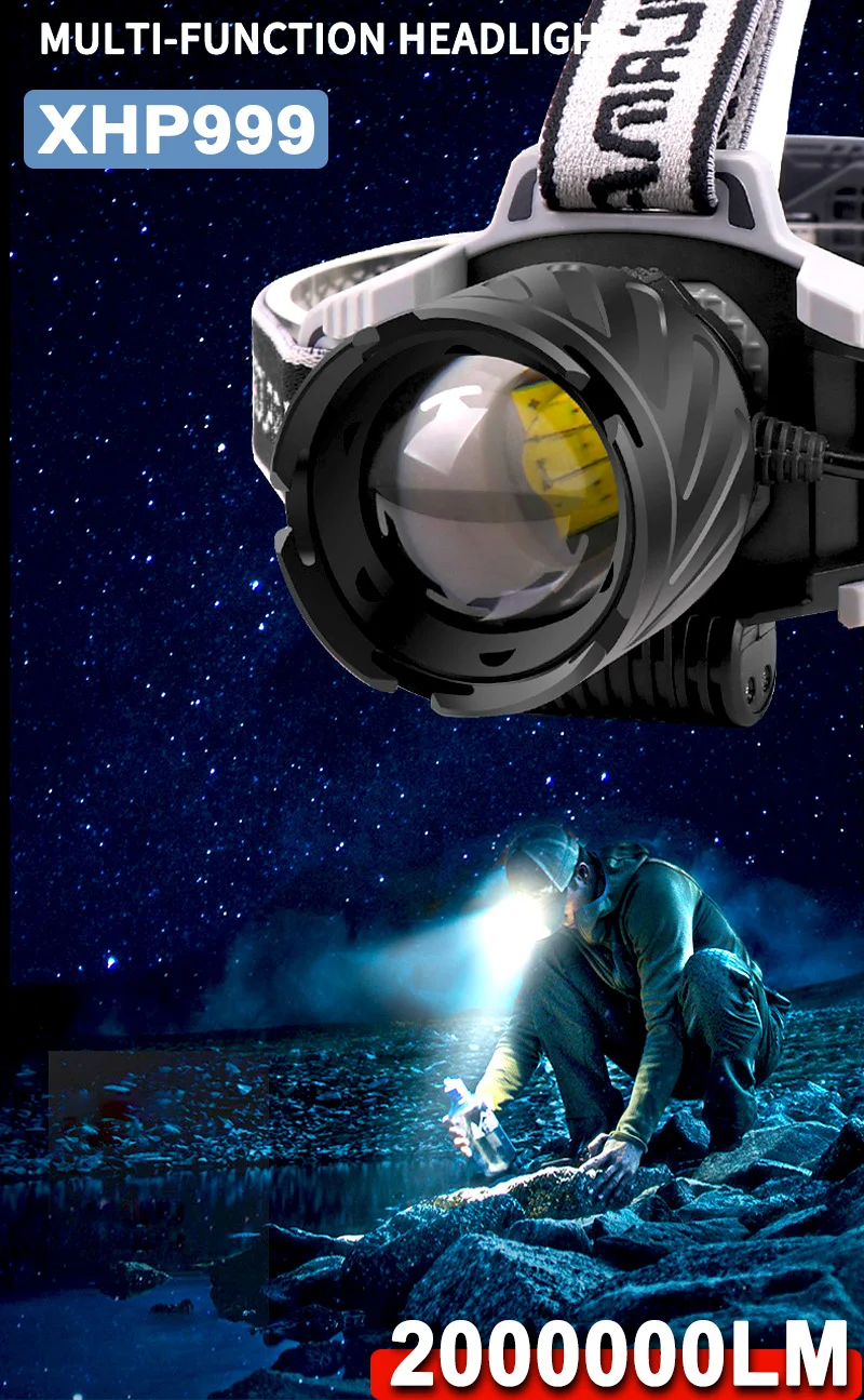 Most Powerful XHP99 LED Headlamp USB Rechargeable Headlight Waterproof Head Torch Use 18650 Battery