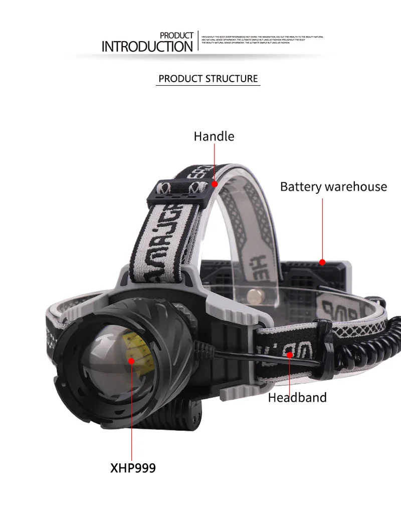 Features: Telescopic zoom, long press to turn off, the lamp head can be adjusted at 270°. The adjustable elastic webbing is breathable and sweat-absorbent. It is comfortable to wear with a thick silicone pad. The head is made of aluminum alloy, which is hard and strong and anti-falling.
