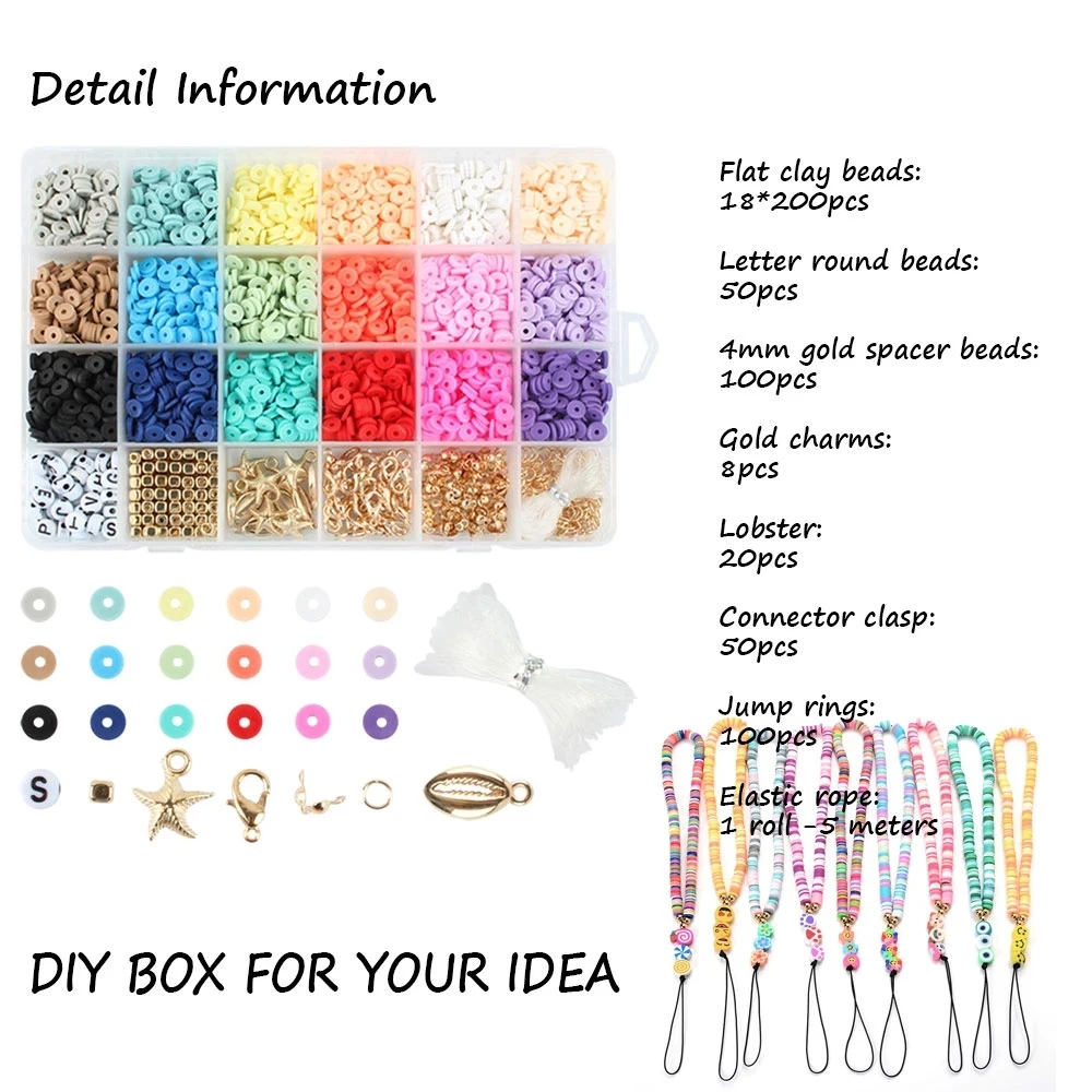 18 цветов 3600 шт плоские круглые полимерные глиняные бусины, набор, очаровательные Золотые Квадратные разделители, бусины для самостоятельного изготовления ювелирных изделий, аксессуары