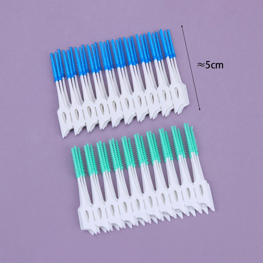 Силиконовые Мягкие межзубные зубочистки имеют мягкие и удобные щетинки, которые могут аккуратно удалить зубной налет, чистую еду и массажные десны. Мягкие силиконовые щетинки легко вставляются в большинство зубов, тем самым устраняя налет, который часто возникает при болезни десен и не может быть тронут зубной щеткой. Таким образом, это определенно идеальный инструмент для чистки полости рта для вас и вашей семьи, вы должны иметь!