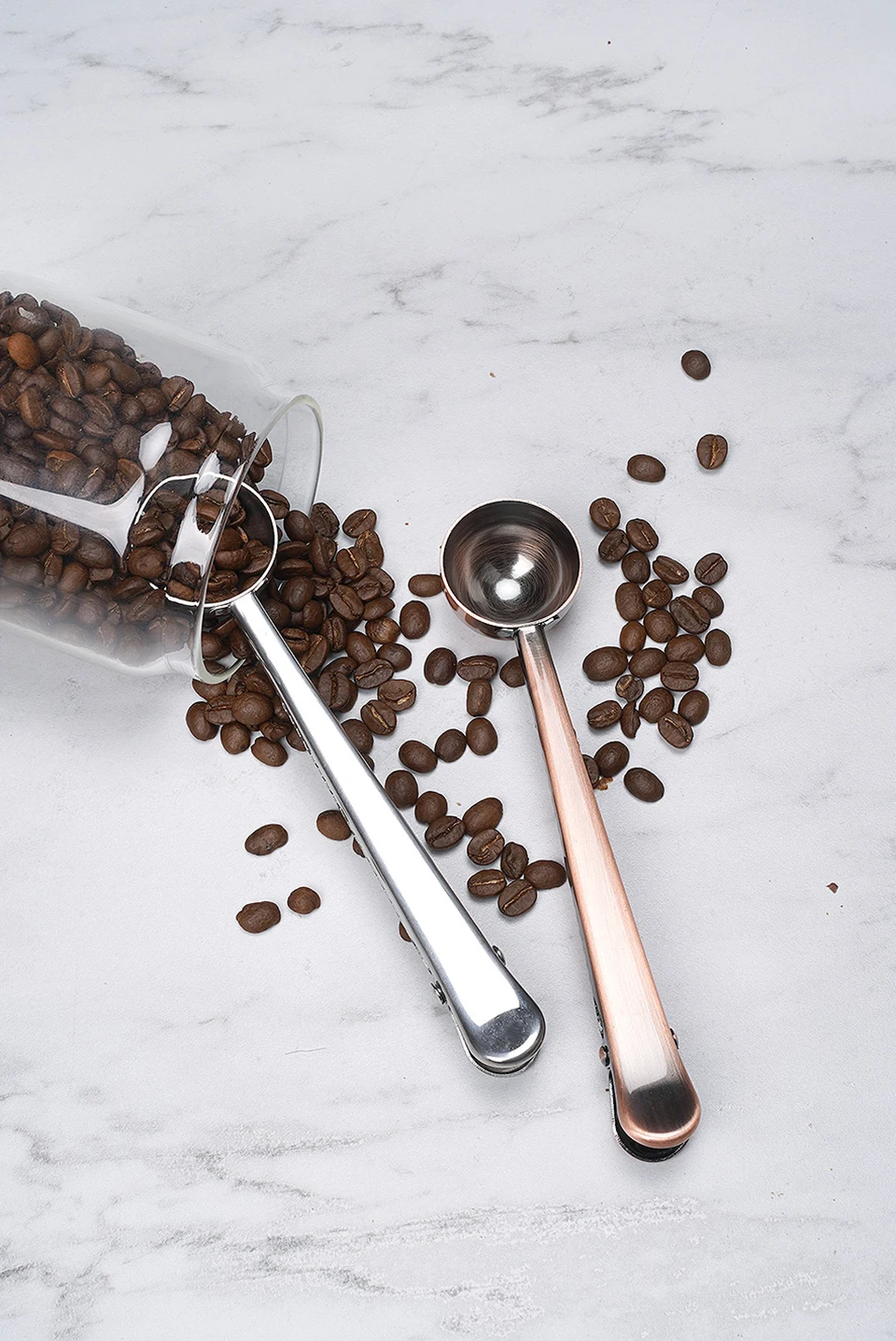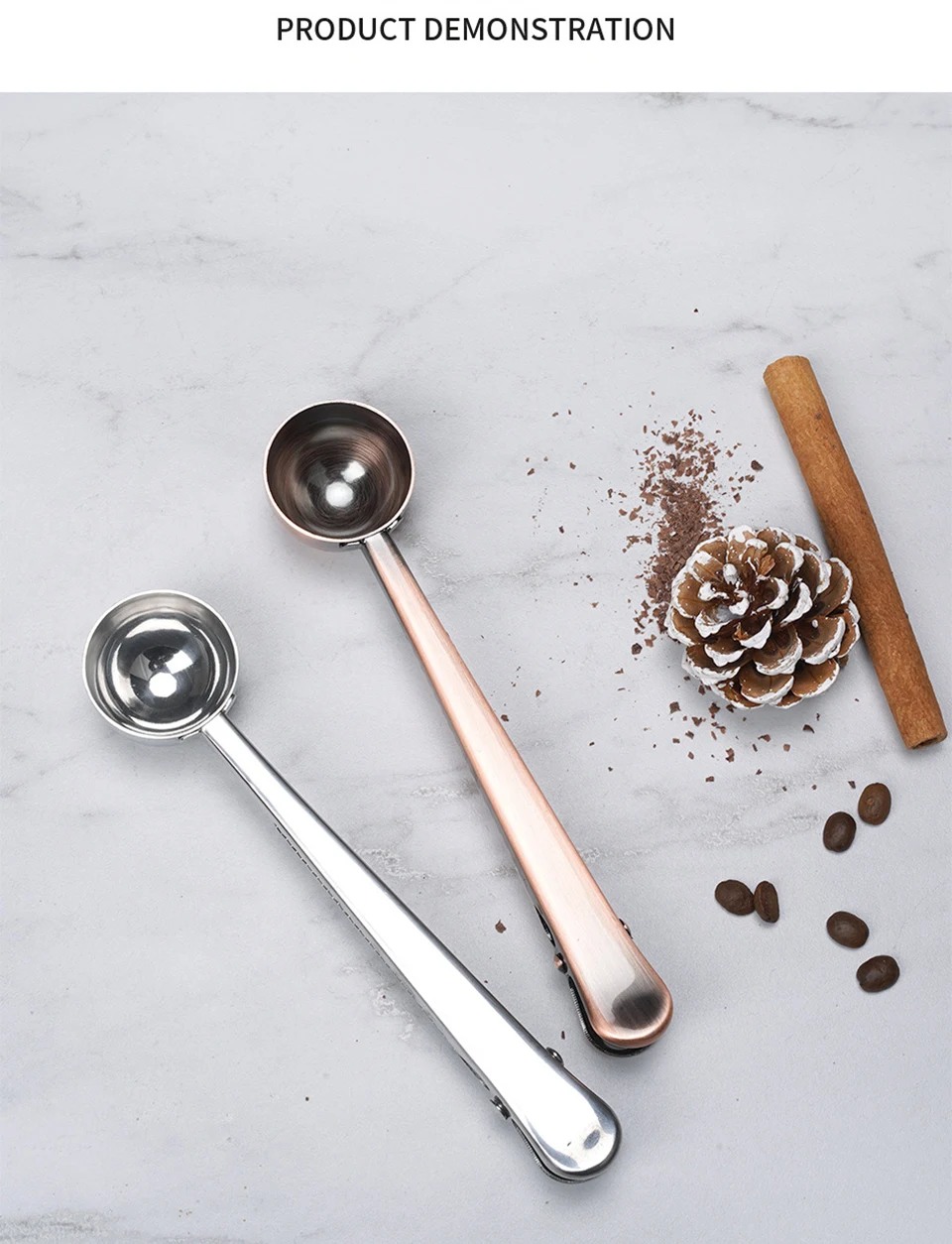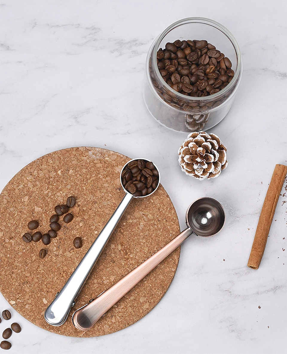 The coffee measuring spoon is equipped with a sealing clip, which can be used for measuring coffee or as a sealing clip
