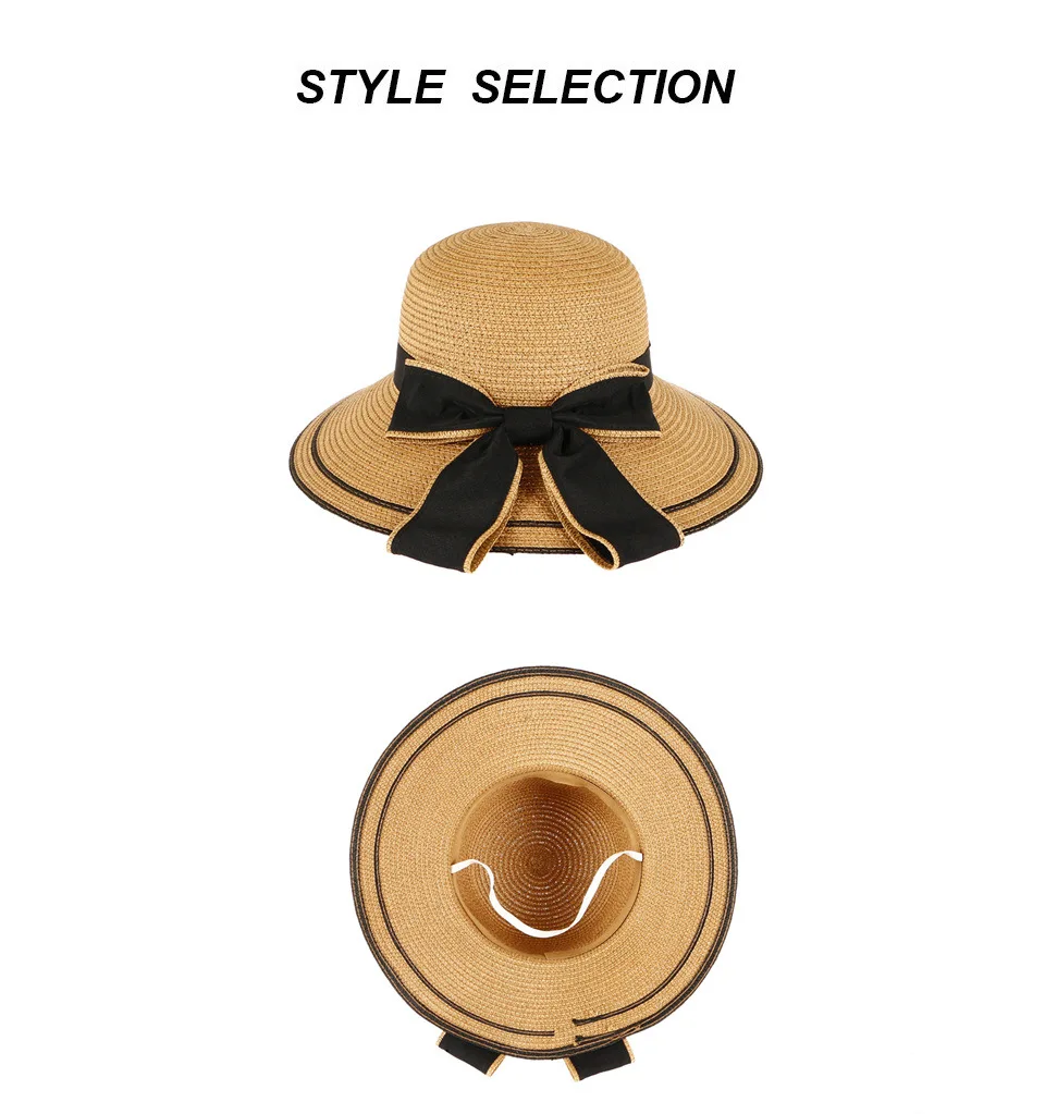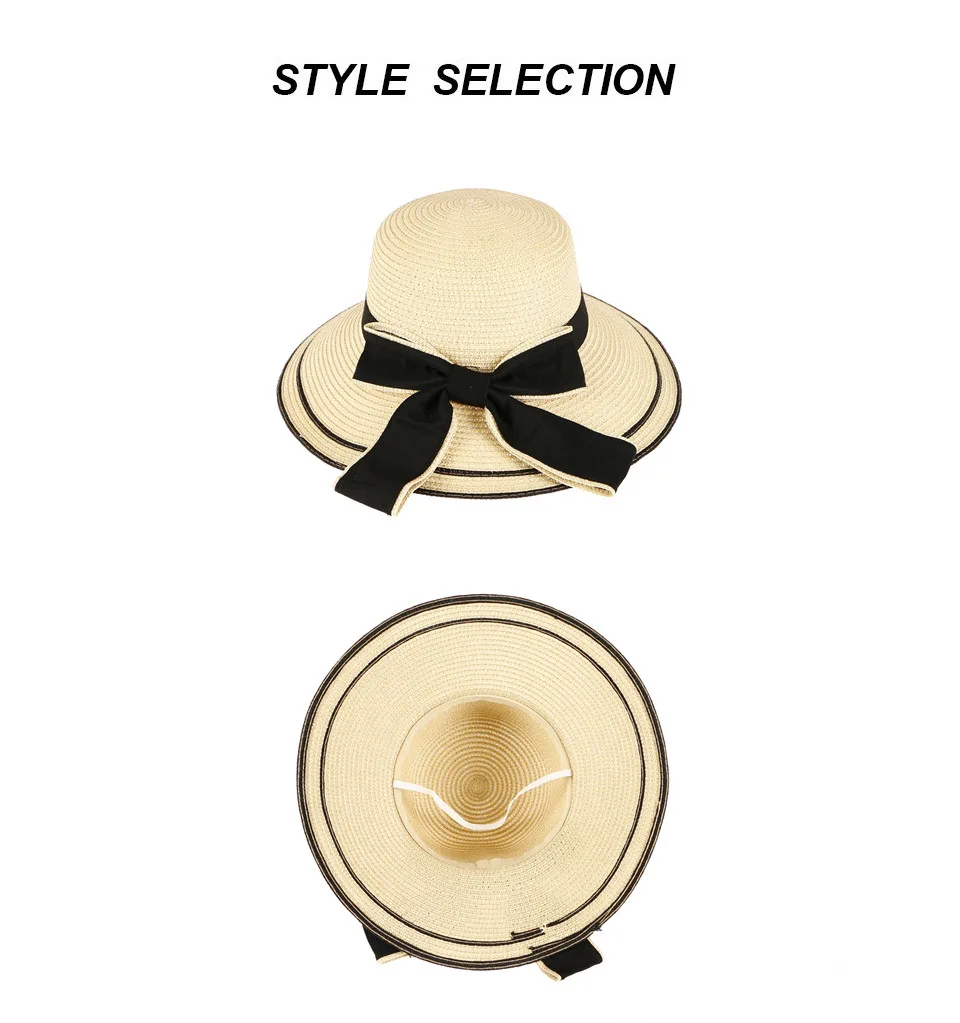 Название:Новая Весенняя и летняя шляпа с большими полями женская уличная солнцезащитный крем для отдыха Солнцезащитная соломенная шляпа с бантом Складная пляжная шляпа Панама Gorros