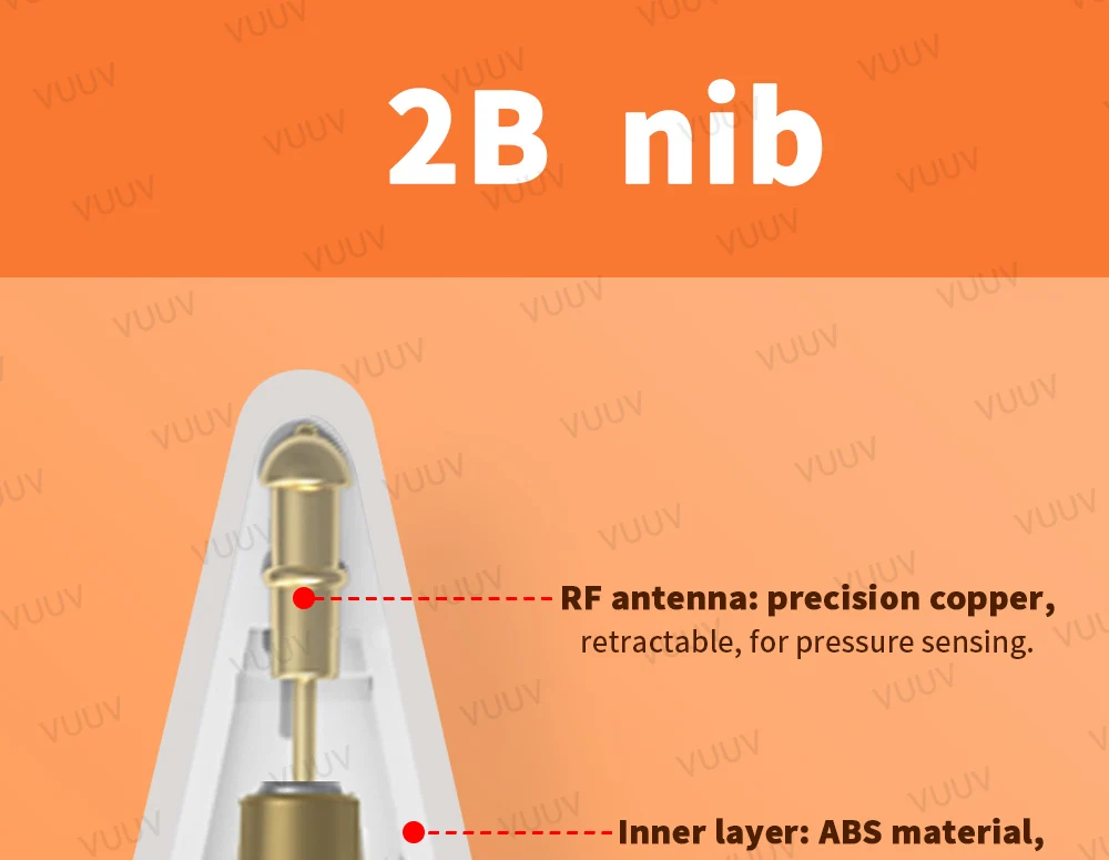 Внешний слой разделен на три вида твердости: внешний слой 2B мягче, что ближе к воздействию письма на бумаге; Внешний слой HB немного тверже, И написание более гладкое; Внешний слой 3,0 Тонкий немного прочнее и имеет наконечник, как шариковая ручка, что делает написание более гладким и используется для прекрасных творений.