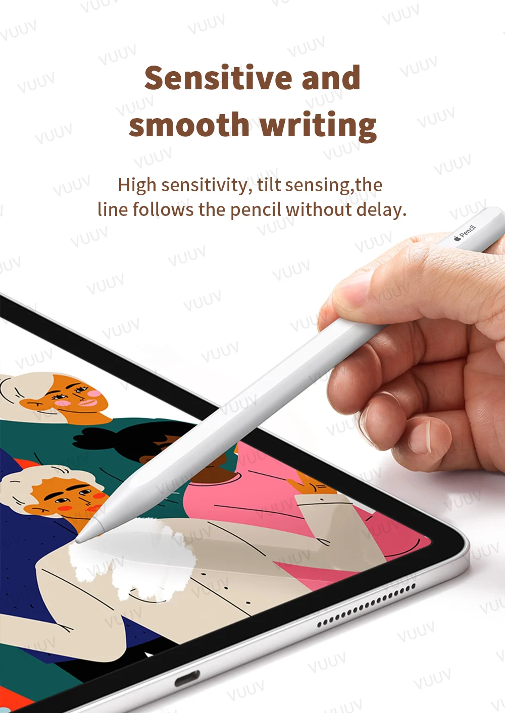 Высокая чувствительность, наклон чувствительности, линия следует за карандашом без задержки.
