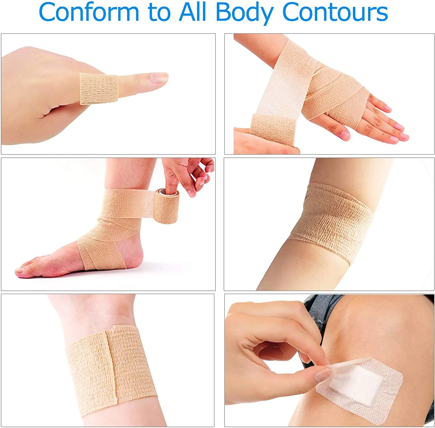 Связные повязки легко рвать вручную без ножниц или ножниц. Просто оторвите и оберните запястья, пальцы, лодыжки, спину, колени, ноги и другие части тела руками; Повязки также для домашних животных.