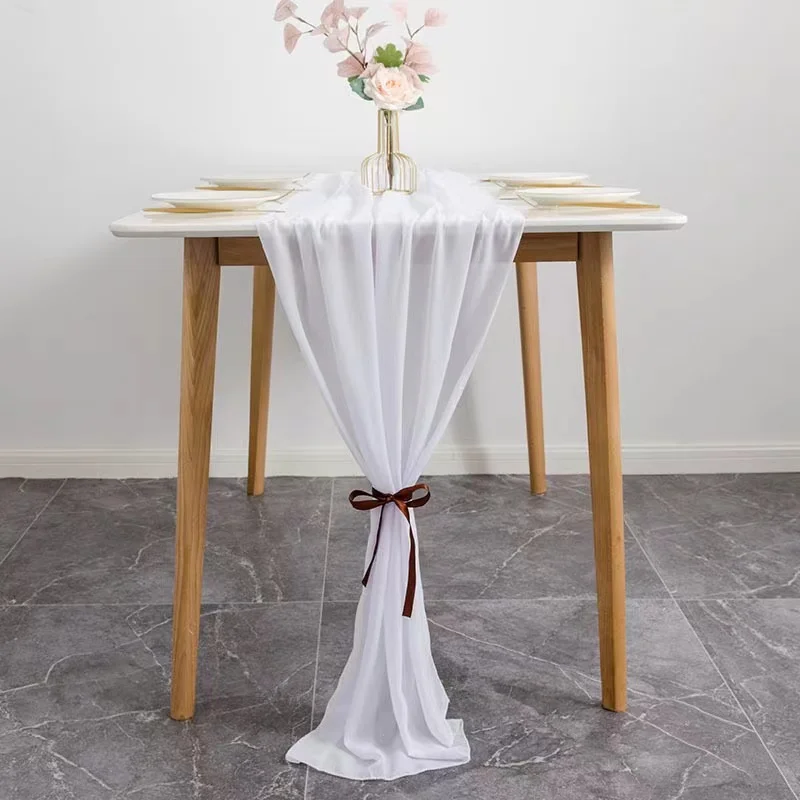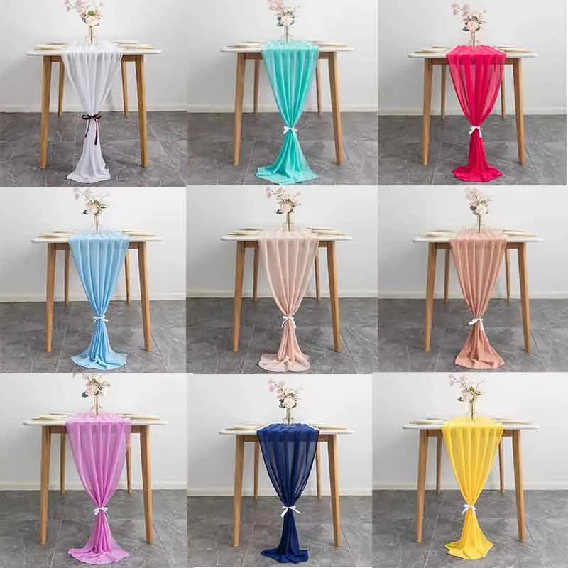 70X300CM цвета слоновой кости золотой шифон Марля настольная дорожка для бежевого деревенского свадебного бегуна отвесный свадебный душ День рождения украшения