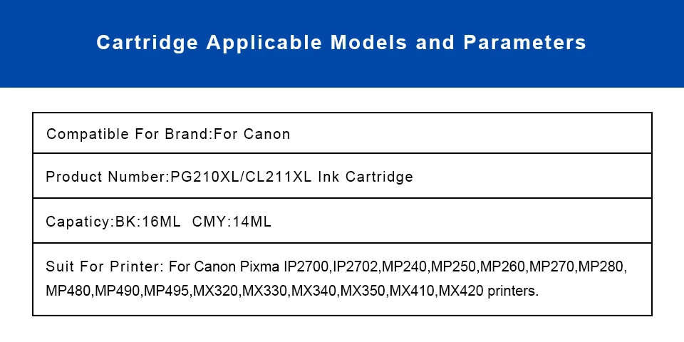 Замена для Canon PG-210XL Черный чернильный картридж, полный с чернилами и чипом