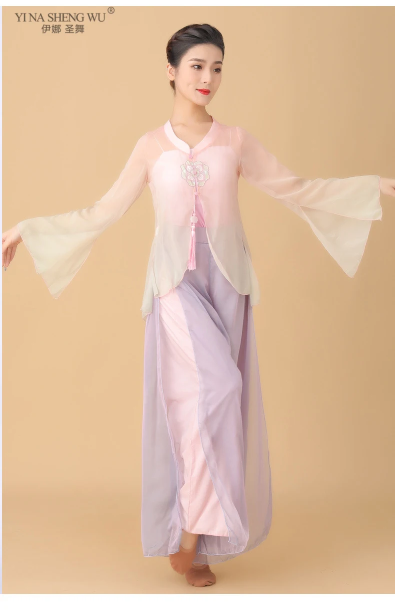 Классический танцевальный марлевый танцевальный костюм женский костюм элегантные топы Одежда для выступлений брюки Китайская классическая танцевальная одежда