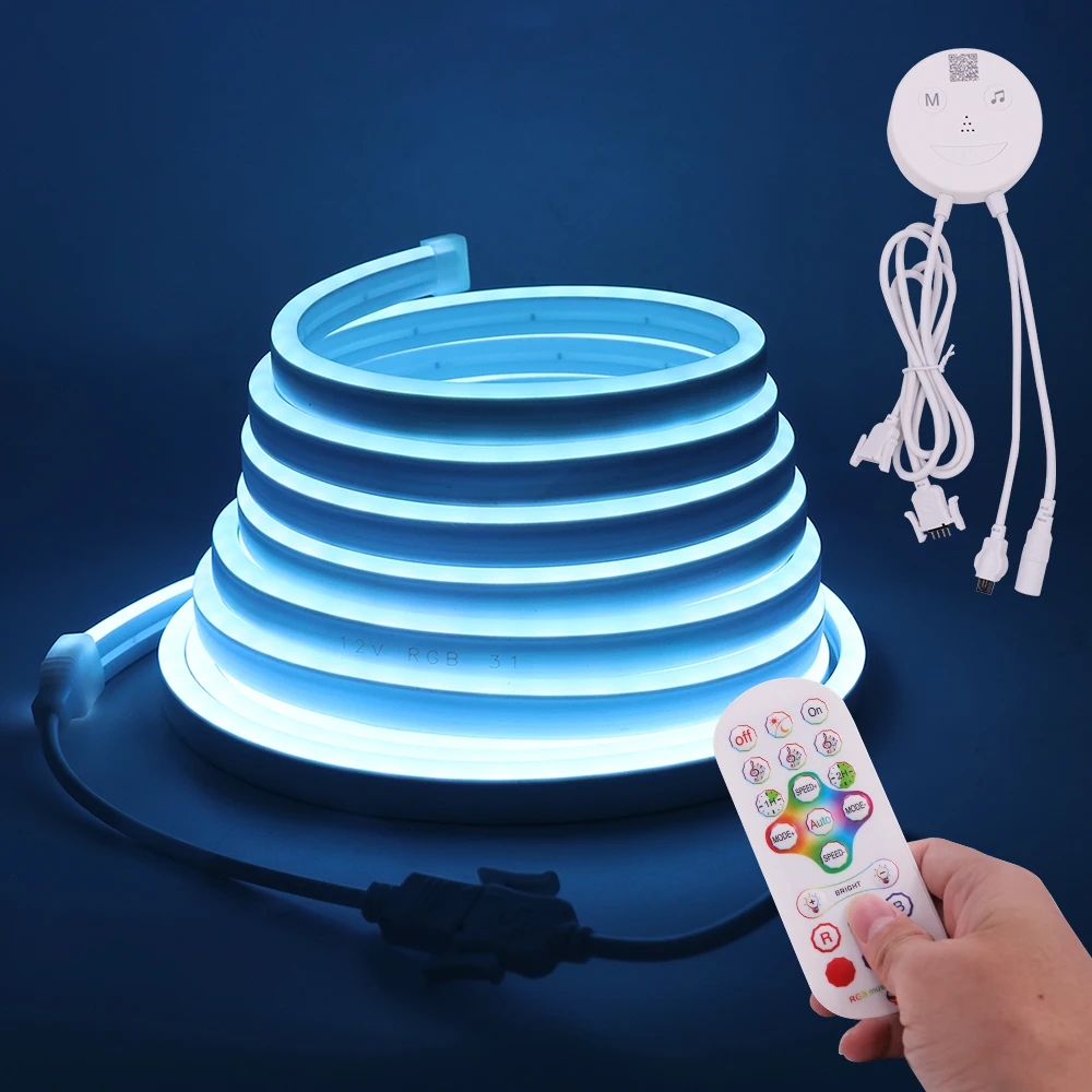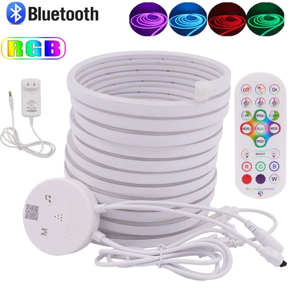 Светодиодная лента RGB, неоновый светильник, знак 5 мм 6 мм 7 мм, узкий, водонепроницаемый, гибкая веревка, трубка 12 в, Bluetooth, музыкальная синхронизация, силикагелевая лента для украшения дома на Рождество